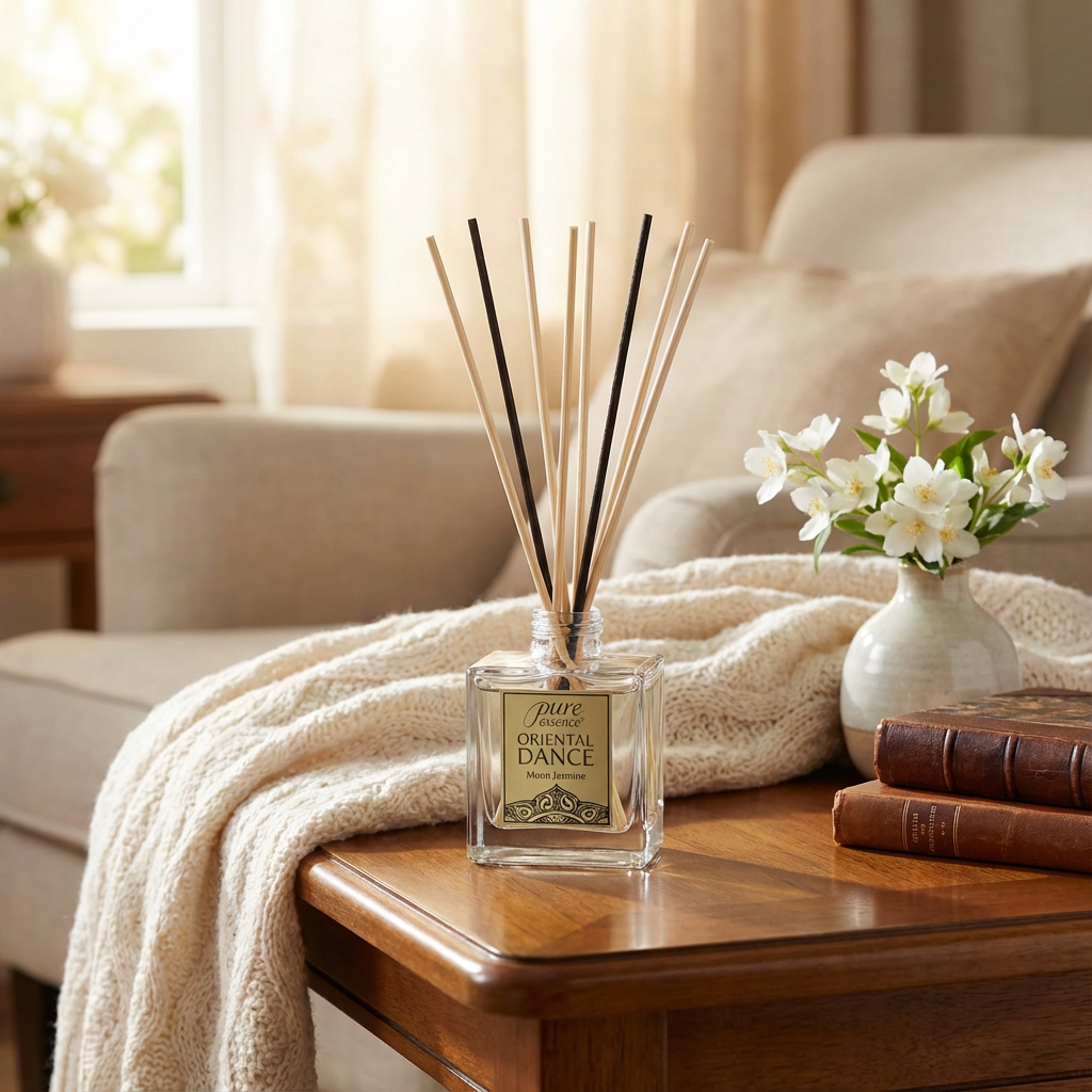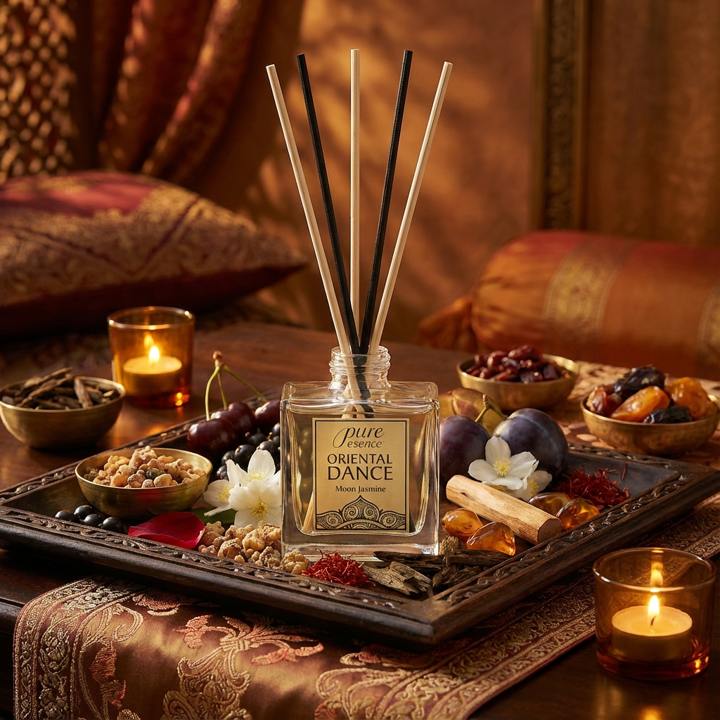 Dyfuzor zapachowy ORIENTAL DANCE – Moon Jasmine, który otula wnętrze ciepłem orientalnych nut owoców, kwiatów i drzew.