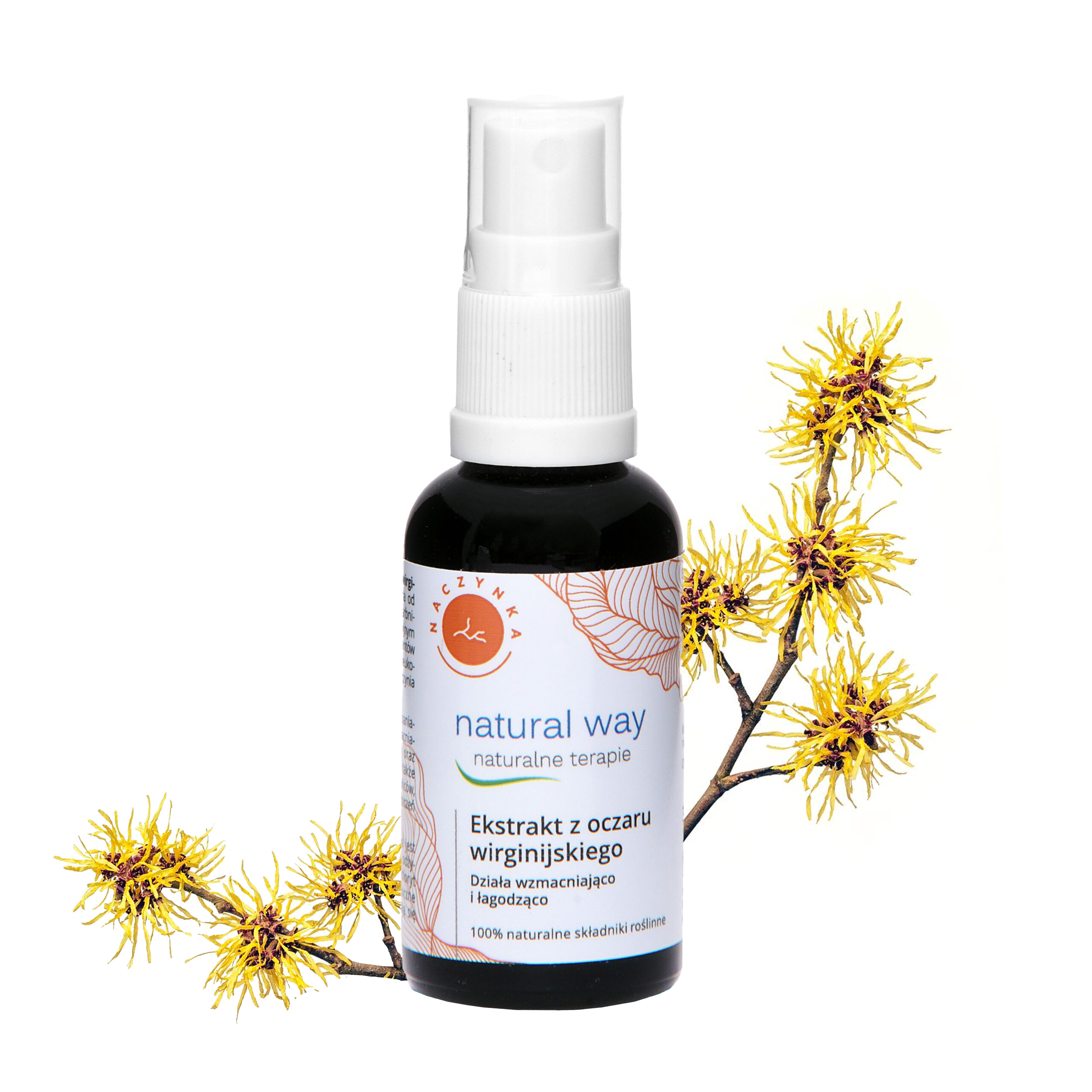 Ekstrakt z oczaru wirginijskiego na naczynka Natural Way, 30ml Oczar wirginijski ma cudowne działanie łagodzące i wzmacniające ściany naczyń krwionośnych, co sprawia, że wspaniale dba o cerę naczynkową. Dzięki niemu “pajączki” i widoczne naczynia są wchłaniane i stają się mniej widoczne. Ma on również zastosowanie w leczeniu sińców, obrzęków, egzemy, zanieczyszczeń skórnych oraz poparzeń skóry.