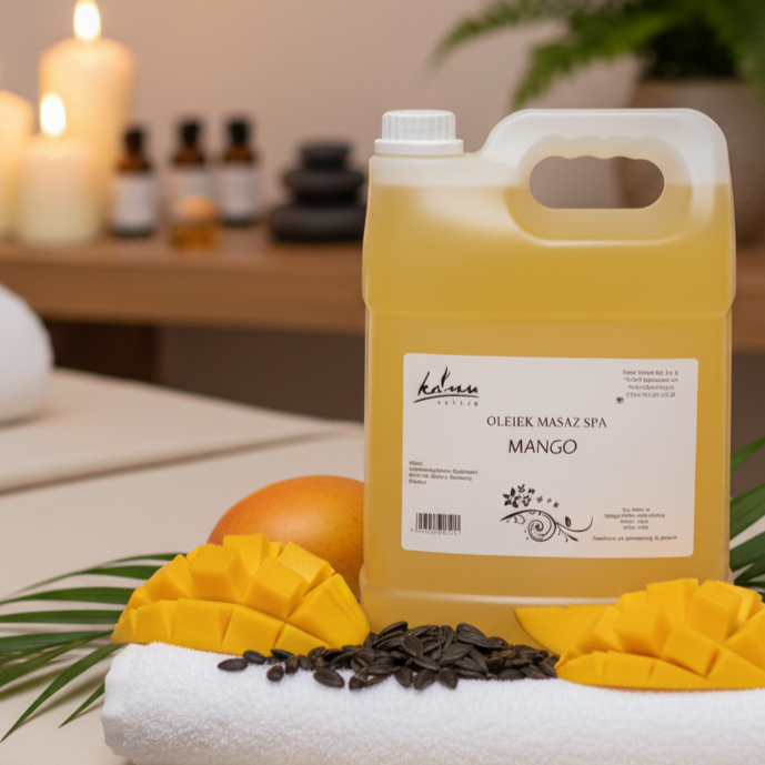 Profesjonalny olejek mango do masażu, który nawilża, wygładza skórę i zapewnia relaksujący aromaterapeutyczny efekt.