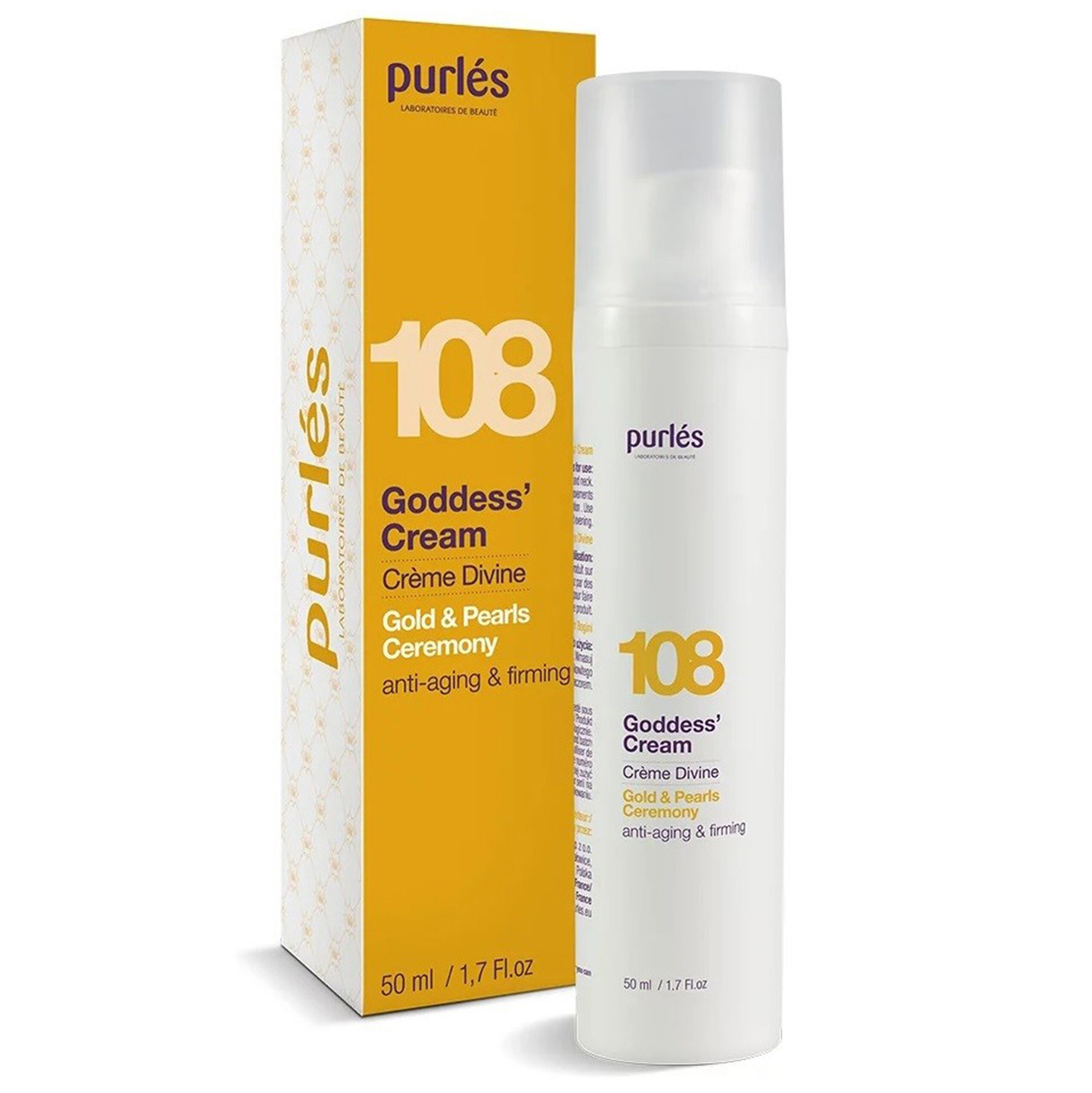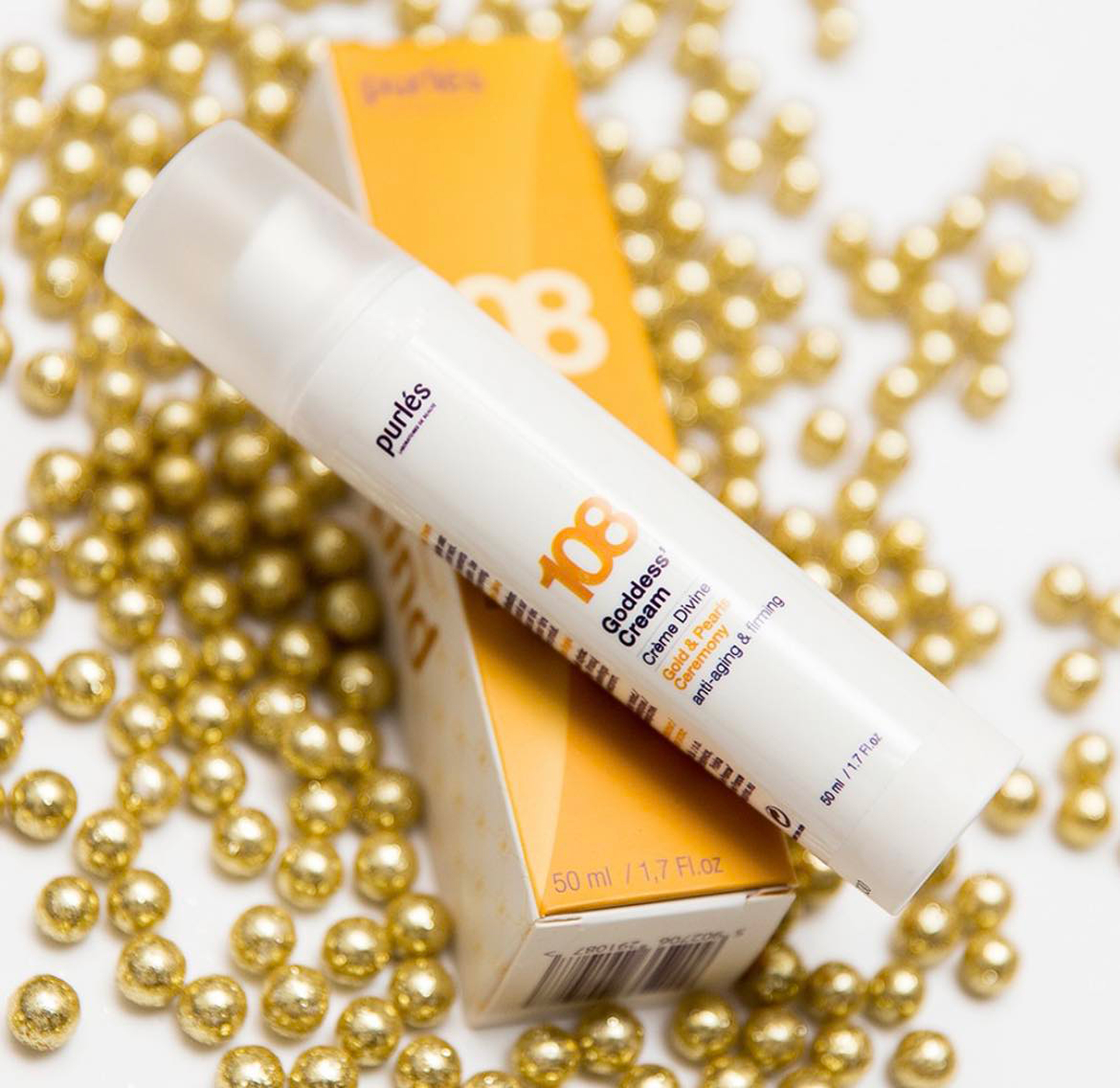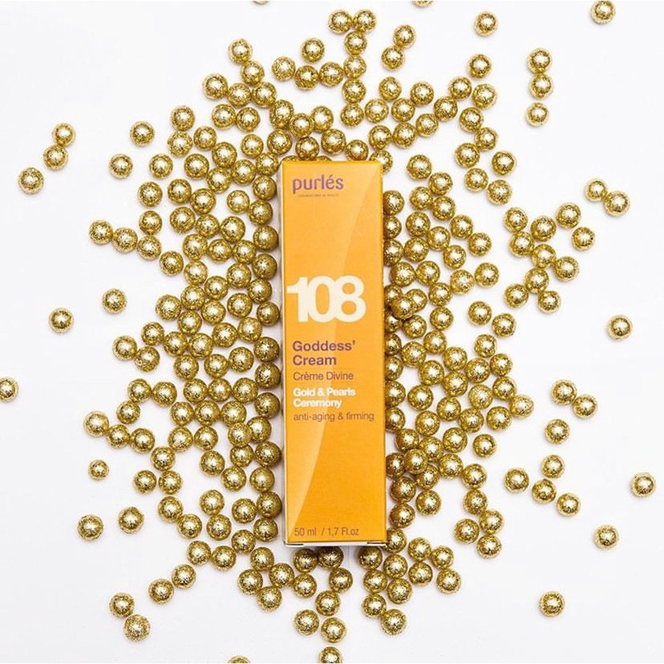 Purles 108 Krem Bogini to luksusowy preparat stworzony z myślą o pielęgnacji dojrzałej skóry. Ten ekskluzywny krem o pojemności 50 ml łączy w sobie delikatną konsystencję i wyrafinowany zapach, co sprawia, że codzienna pielęgnacja staje się przyjemnością. Krem skutecznie regeneruje oraz poprawia kondycję skóry, ujędrniając i wygładzając jej powierzchnię, a także nadając cerze młodzieńczy blask. Dzięki unikalnej kompozycji aktywnych składników, takich jak 23-karatowe złoto, ekstrakt z kawioru, kwas hialuronowy oraz puder perłowy, produkt wspiera procesy rewitalizacji i nawilżania, przyczyniając się do zmniejszenia widoczności zmarszczek oraz rozświetlenia cery.