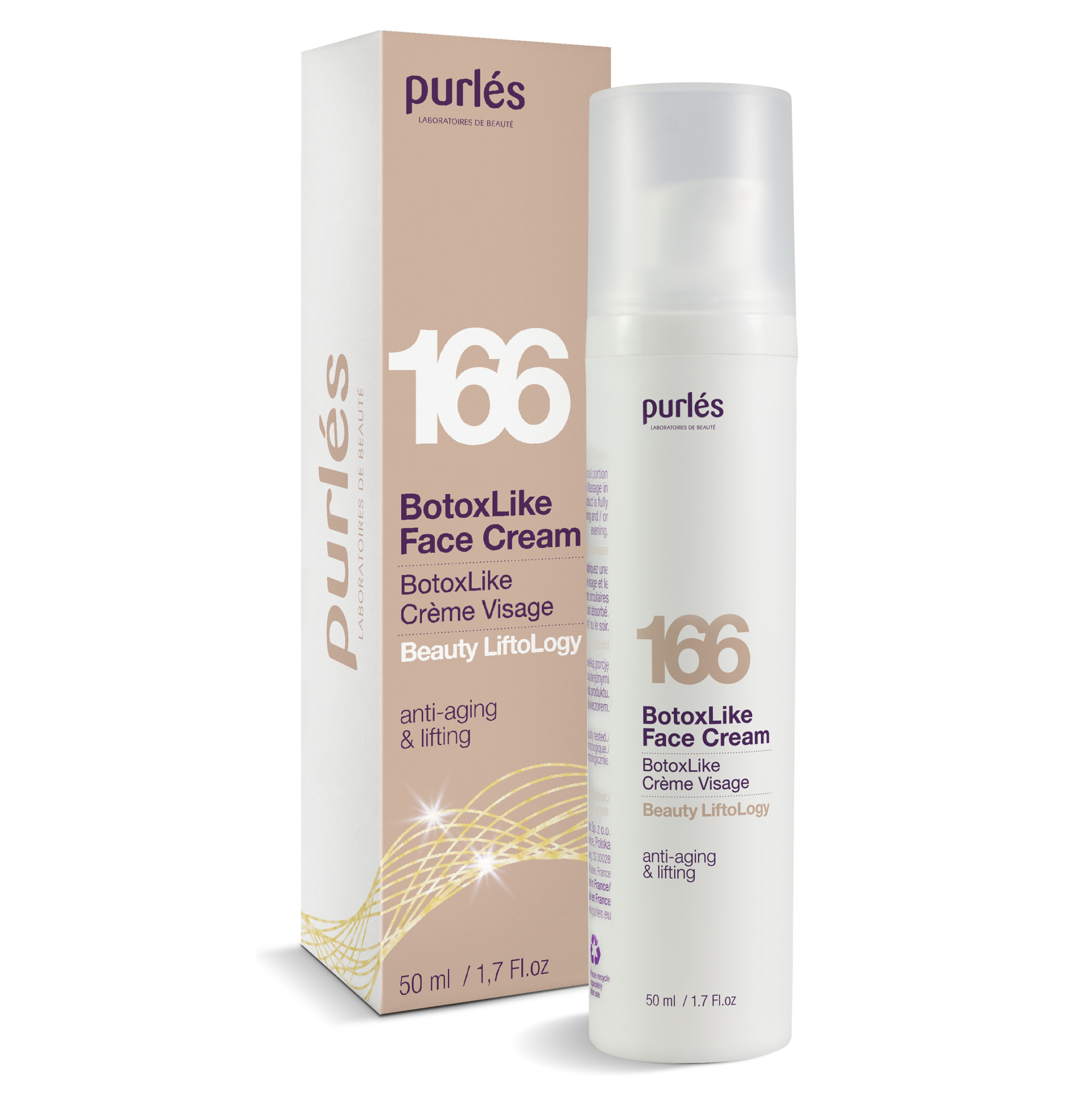 Purles 166 Krem do Twarzy BotoxLike to luksusowy, liftingujący krem stworzony z myślą o pielęgnacji skóry dojrzałej. Dzięki innowacyjnej formule, przypominającej działanie botoksu, produkt skutecznie redukuje widoczność zmarszczek oraz przywraca skórze sprężystość i blask. Zawartość unikalnych składników aktywnych, takich jak Stoechiol, Voluform oraz kompleks nawilżający Pheohydrane, sprawia, że krem nie tylko wygładza skórę, ale również zapewnia długotrwałe nawilżenie.