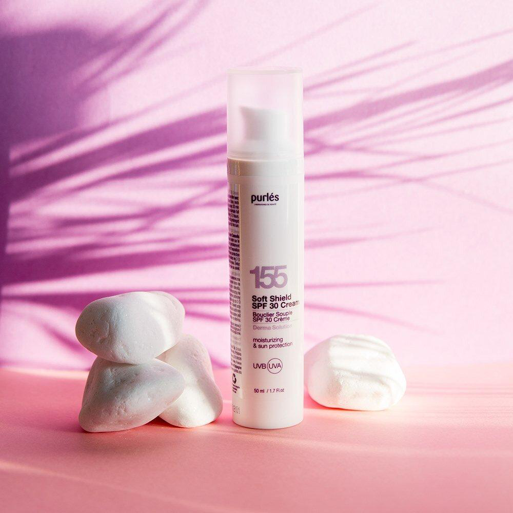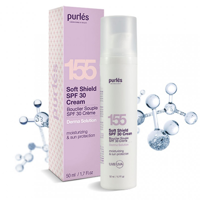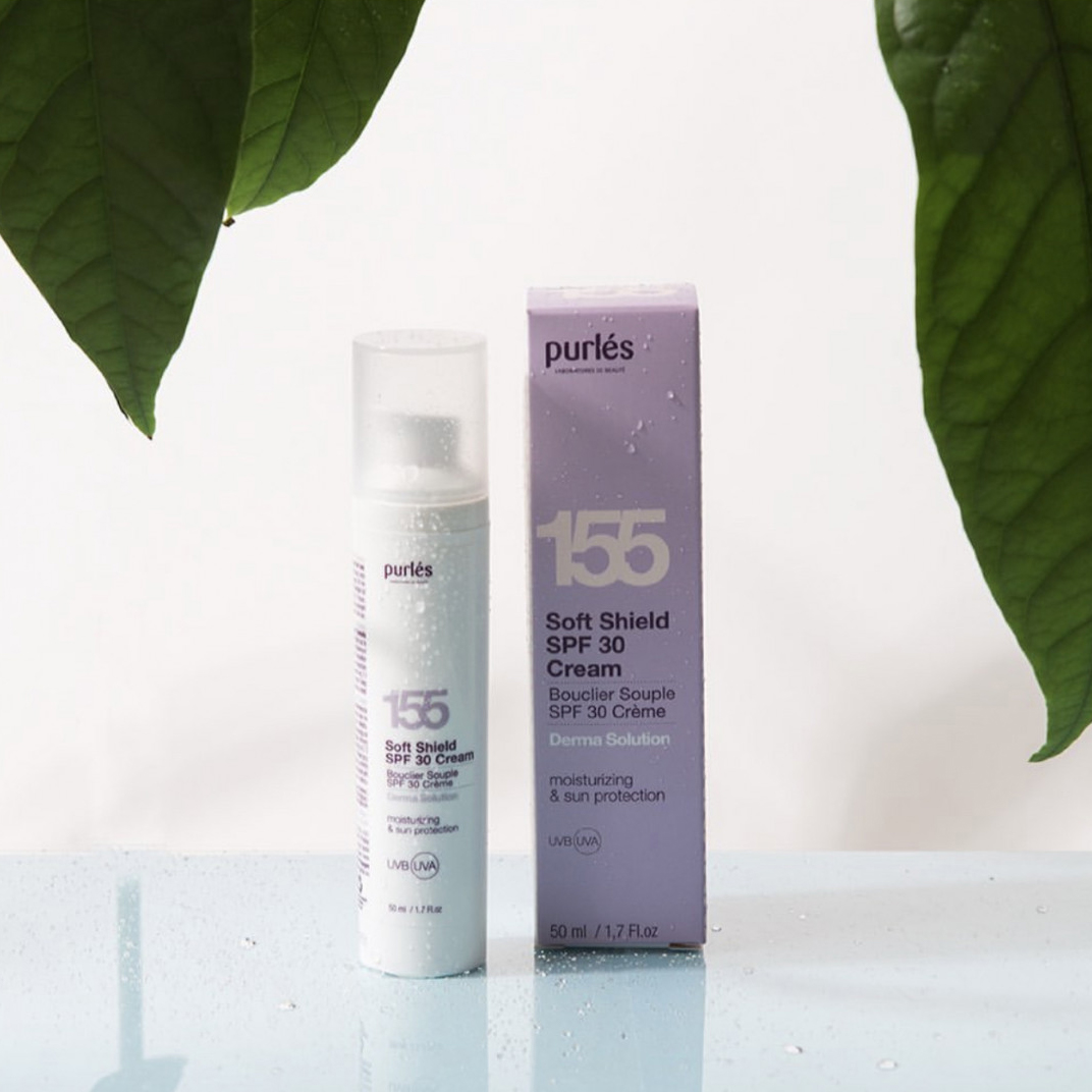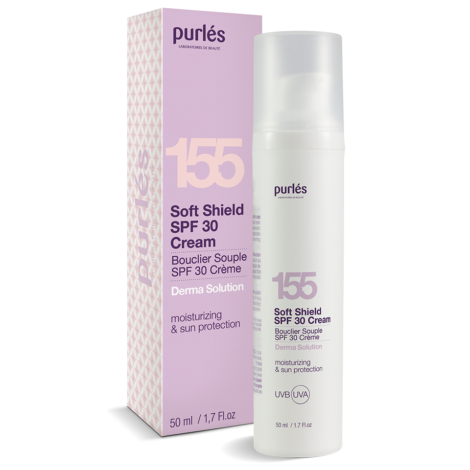 Purles 155 Soft Shield SPF30 Cream to nawilżający krem o lekkiej, aksamitnej konsystencji, który oferuje wysoką ochronę przeciwsłoneczną. Idealny do codziennej pielęgnacji, zapobiega negatywnym skutkom promieniowania ultrafioletowego, takim jak suchość, zmarszczki, przebarwienia oraz utrata jędrności skóry.