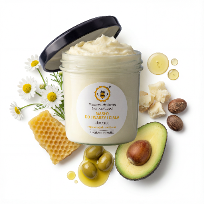 Masło do ciała i twarzy Ukojenie od Miodowej Mydlarni to wyjątkowy, 100% naturalny kosmetyk, stworzony z myślą o pielęgnacji wrażliwej skóry dorosłych i dzieci. Jego unikalna receptura łączy składniki nawilżające i kojące, zapewniając doskonałe wsparcie dla skóry podatnej na działanie szkodliwych czynników zewnętrznych.