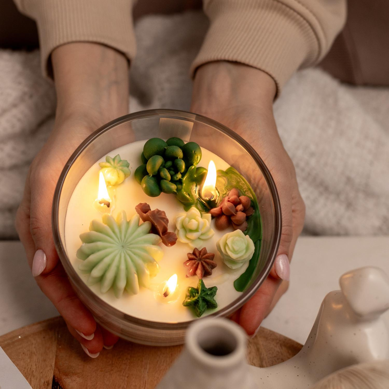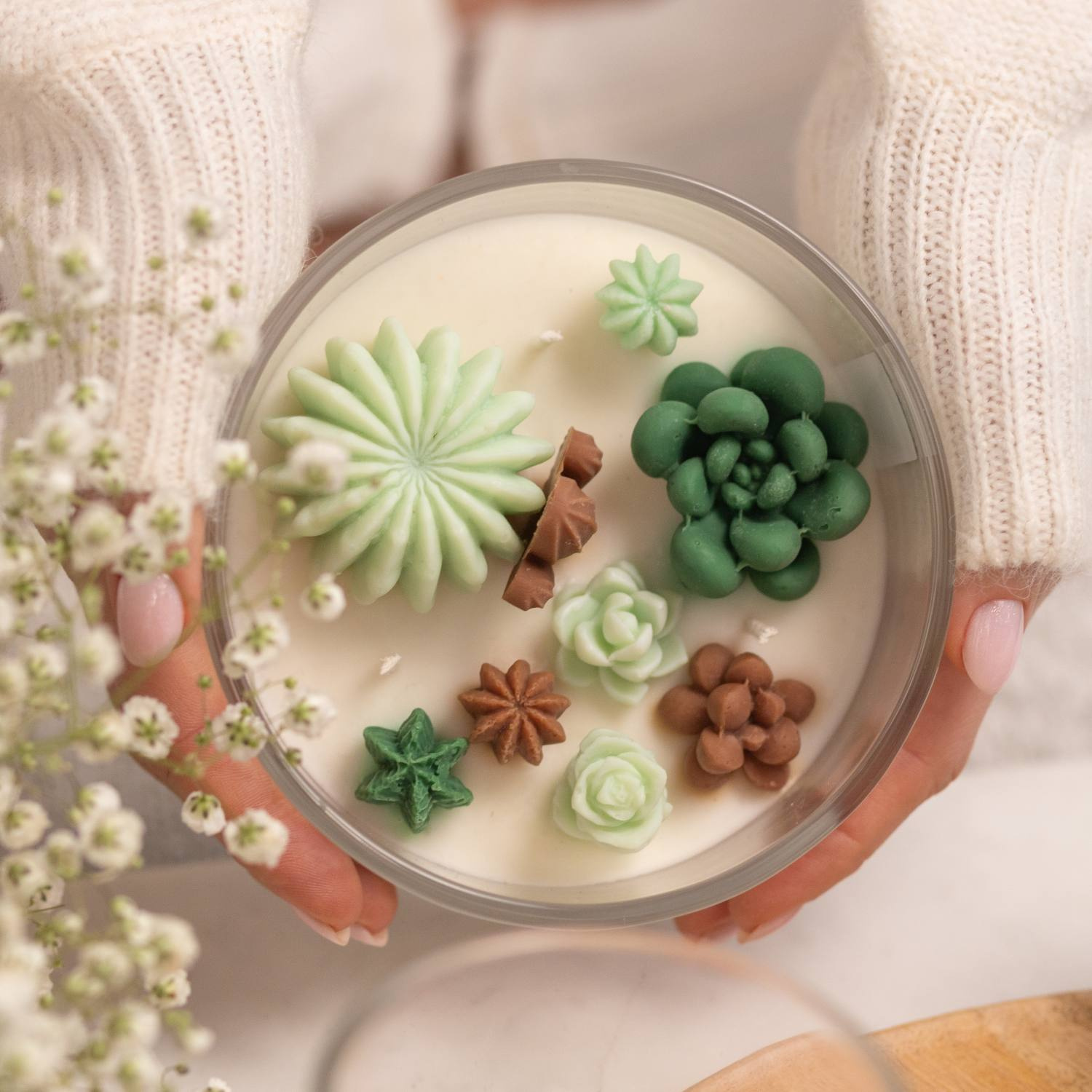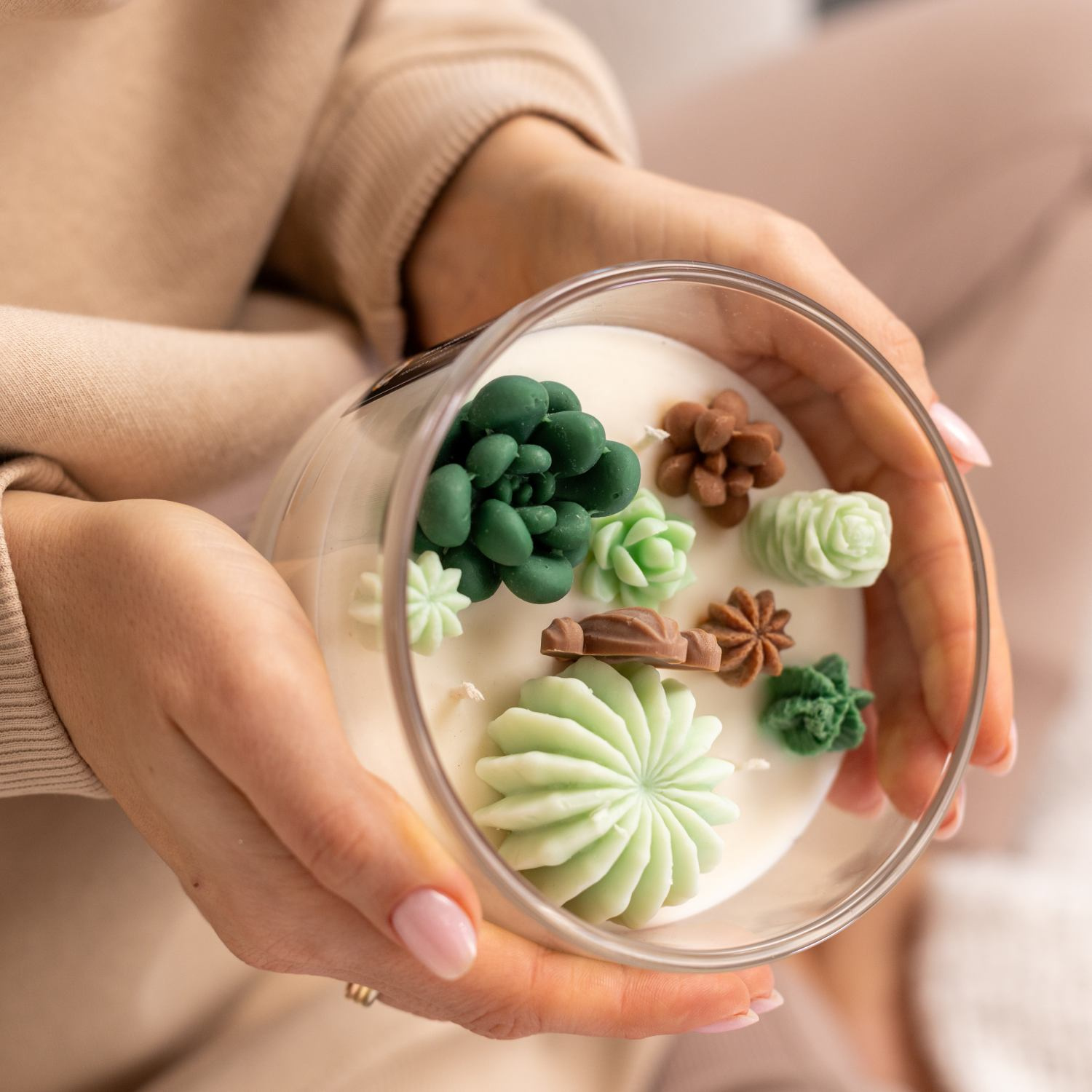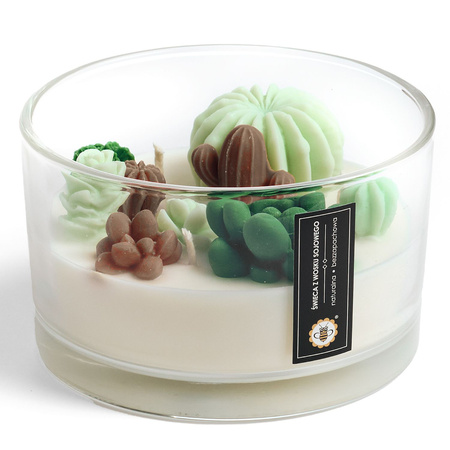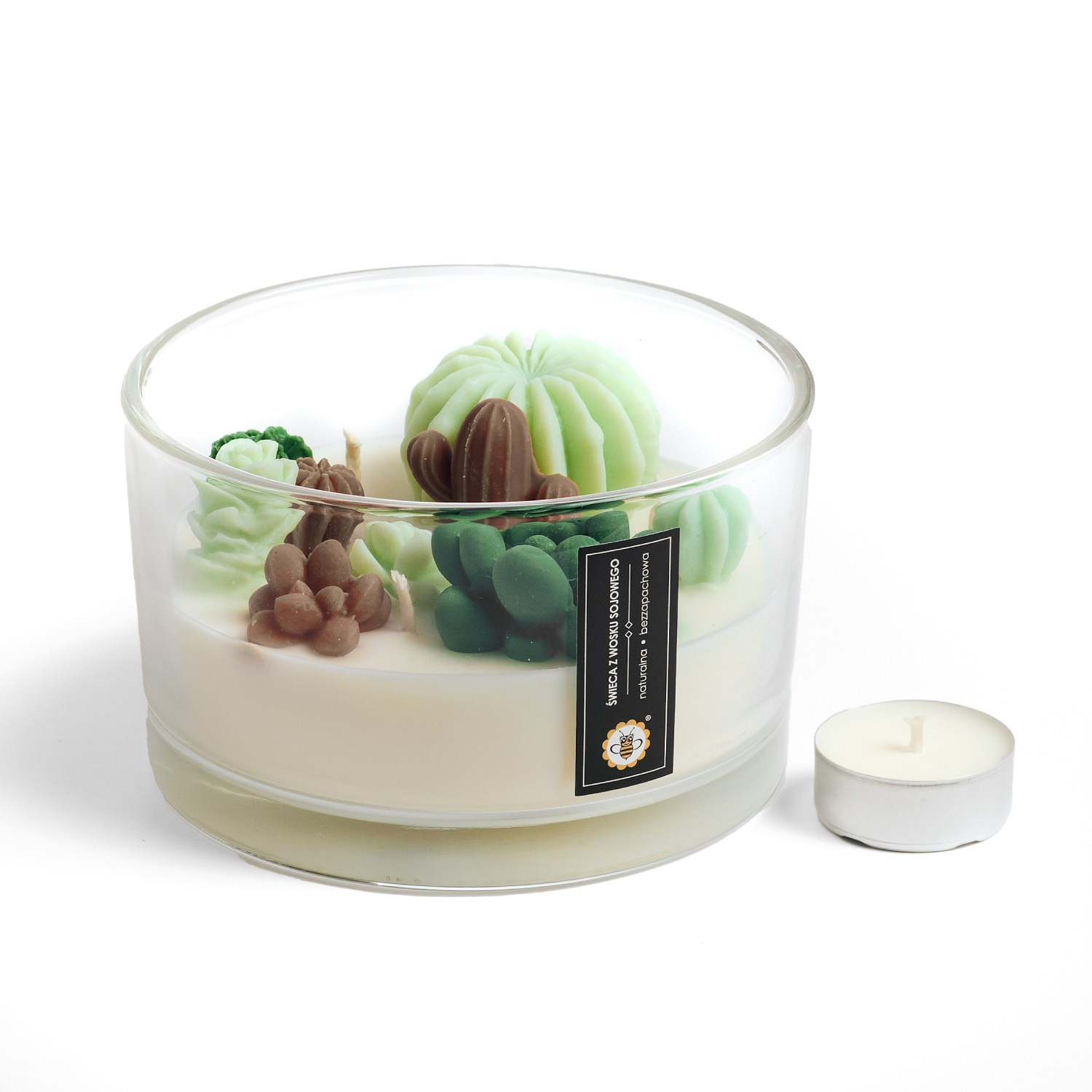 Świeca sojowa bezzapachowa Zielone Kaktusy od Miodowej Mydlarni to doskonałe rozwiązanie dla osób ceniących sobie harmonię, estetykę oraz proekologiczne wybory. Ręcznie wylewana świeca, o minimalistycznym designie, stworzona z naturalnego wosku sojowego, emituje delikatny blask bez intensywnych zapachów, co tworzy przyjemną atmosferę w każdym wnętrzu. Dzięki trzem bawełnianym knotom, świeca zapewnia długotrwałe i równomierne palenie, które pozwoli Ci cieszyć się jej urokami przez wiele godzin.