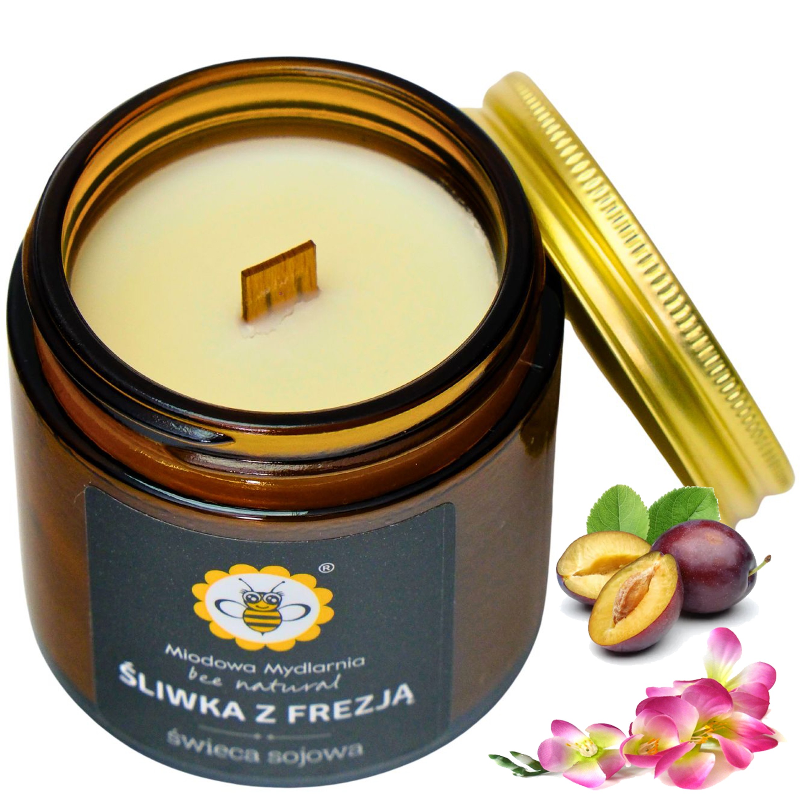 Odkryj magię relaksu z naszą świecą z naturalnym woskiem sojowym Miodowa Mydlarnia, która wypełni Twój dom niezapomnianym aromatem. W połączeniu soczystej słodkiej śliwki oraz uroczego zapachu frezji, ta świeca jest prawdziwą ucztą dla zmysłów.