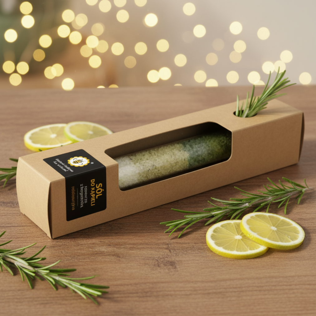 Korzystanie z naszej soli do kąpieli to prawdziwa przyjemność. Praktyczna fiolka pozwala na wykorzystanie jej w jednej relaksującej kąpieli, a kraftowe pudełeczko z okienkiem sprawia, że produkt jest gotowy do wręczenia w każdej chwili. Co więcej, sól sprawdzi się nie tylko w wannie. Możesz również użyć jej w misce z wodą do odprężających kąpieli stóp, zarówno w ciepłej, jak i zimnej wodzie.