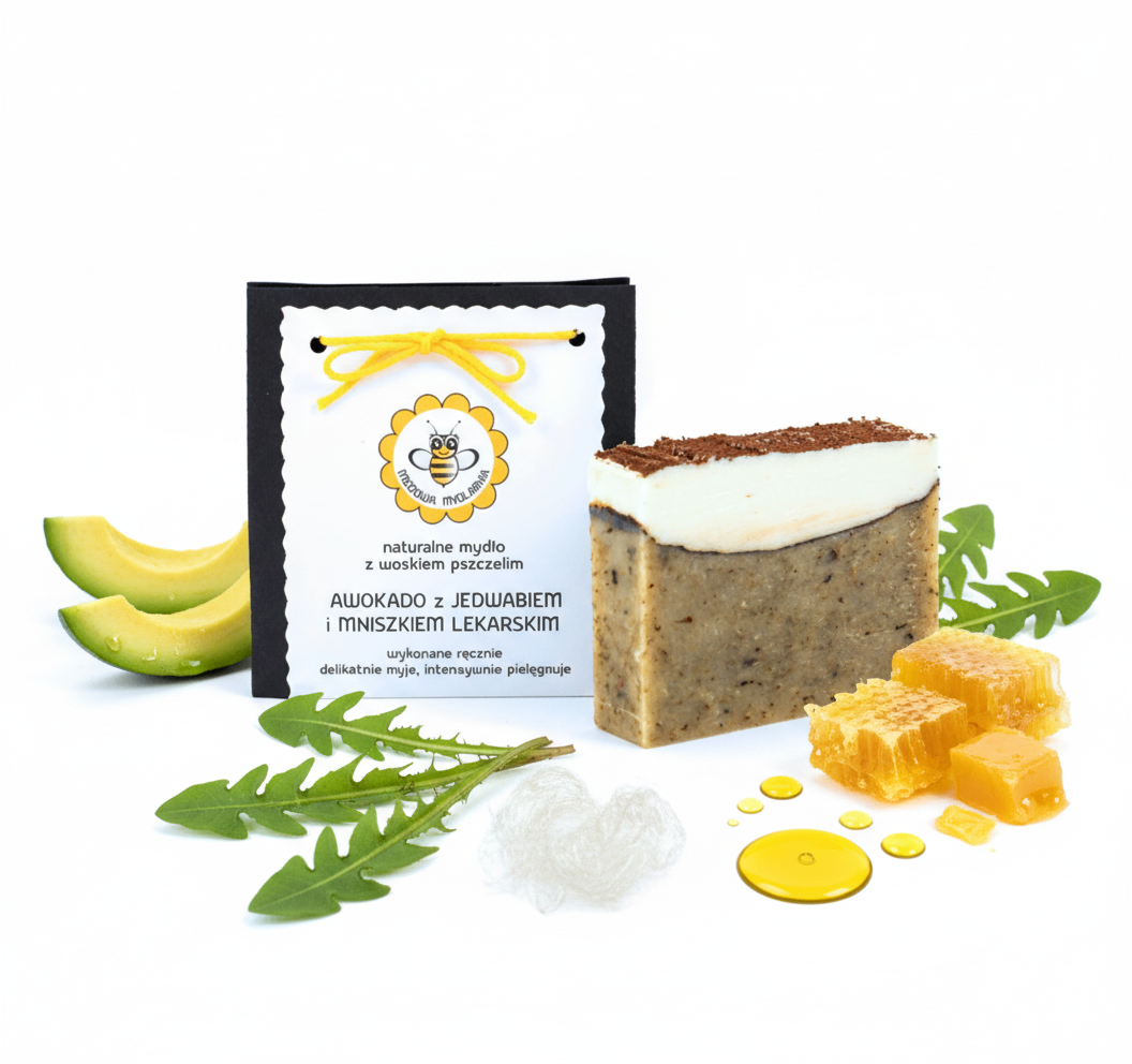 Naturalne Mydło Awokado z Jedwabiem i Mniszkiem Lekarskim 95 g – Miodowa Mydlarnia