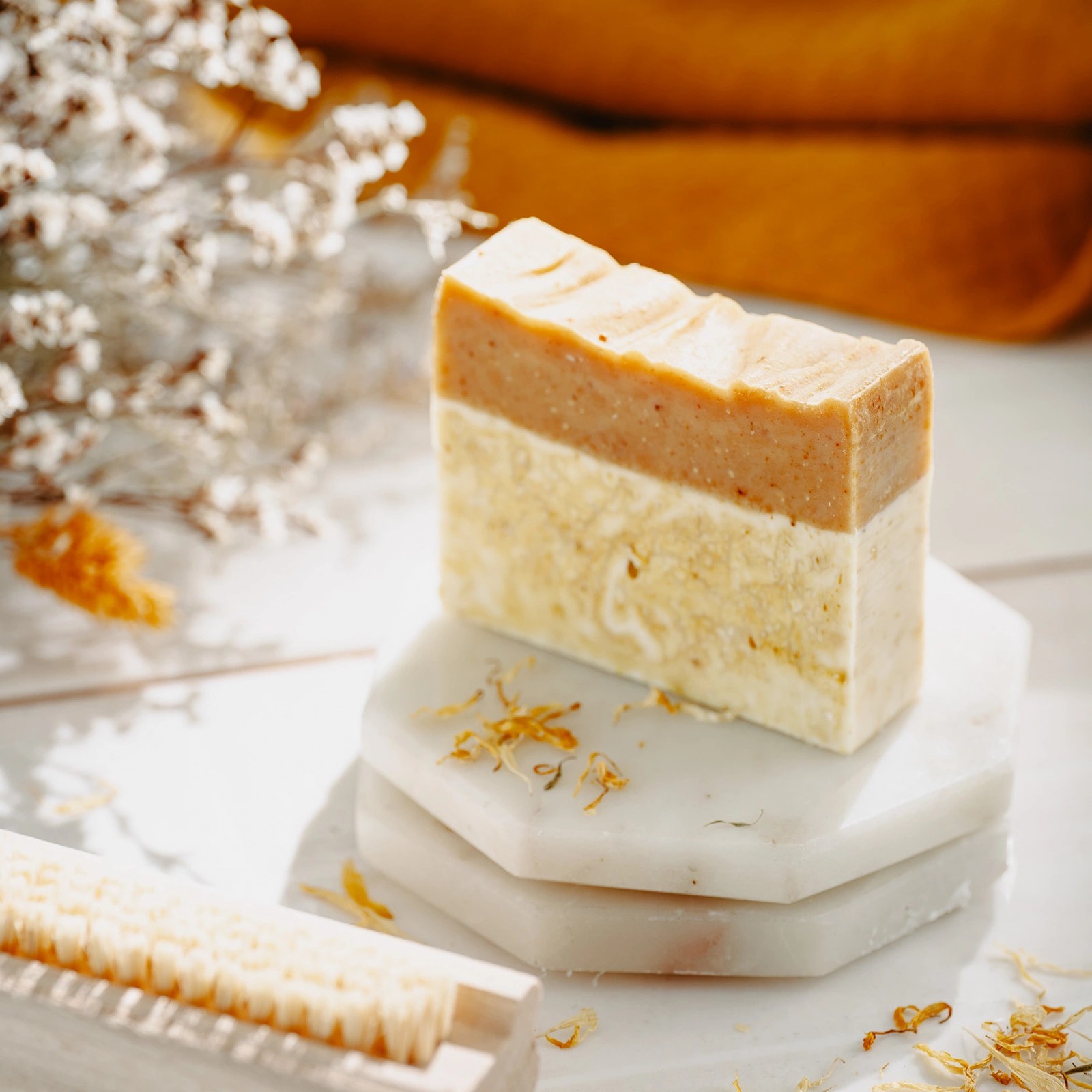 Naturalne Mydło Nagietek w Słodkiej Pomarańczy 95g – Miodowa Mydlarnia