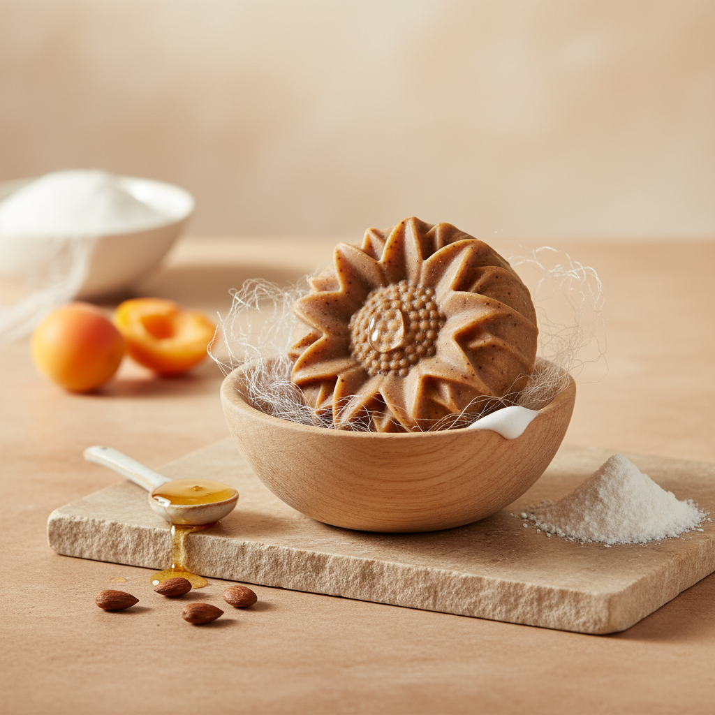 Odkryj luksus naturalnej pielęgnacji z peelingującym mydłem morelowym z jedwabiem, miodem i białą glinką. To wyjątkowe mydło, stworzone z roślinnych składników, łączy w sobie właściwości odżywcze oraz oczyszczające, aby zapewnić Twojej skórze kompleksową pielęgnację. Dzięki zawartości drobno zmielonych pestek moreli, mydło skutecznie usunie martwy naskórek, pozostawiając skórę gładką i promienną.