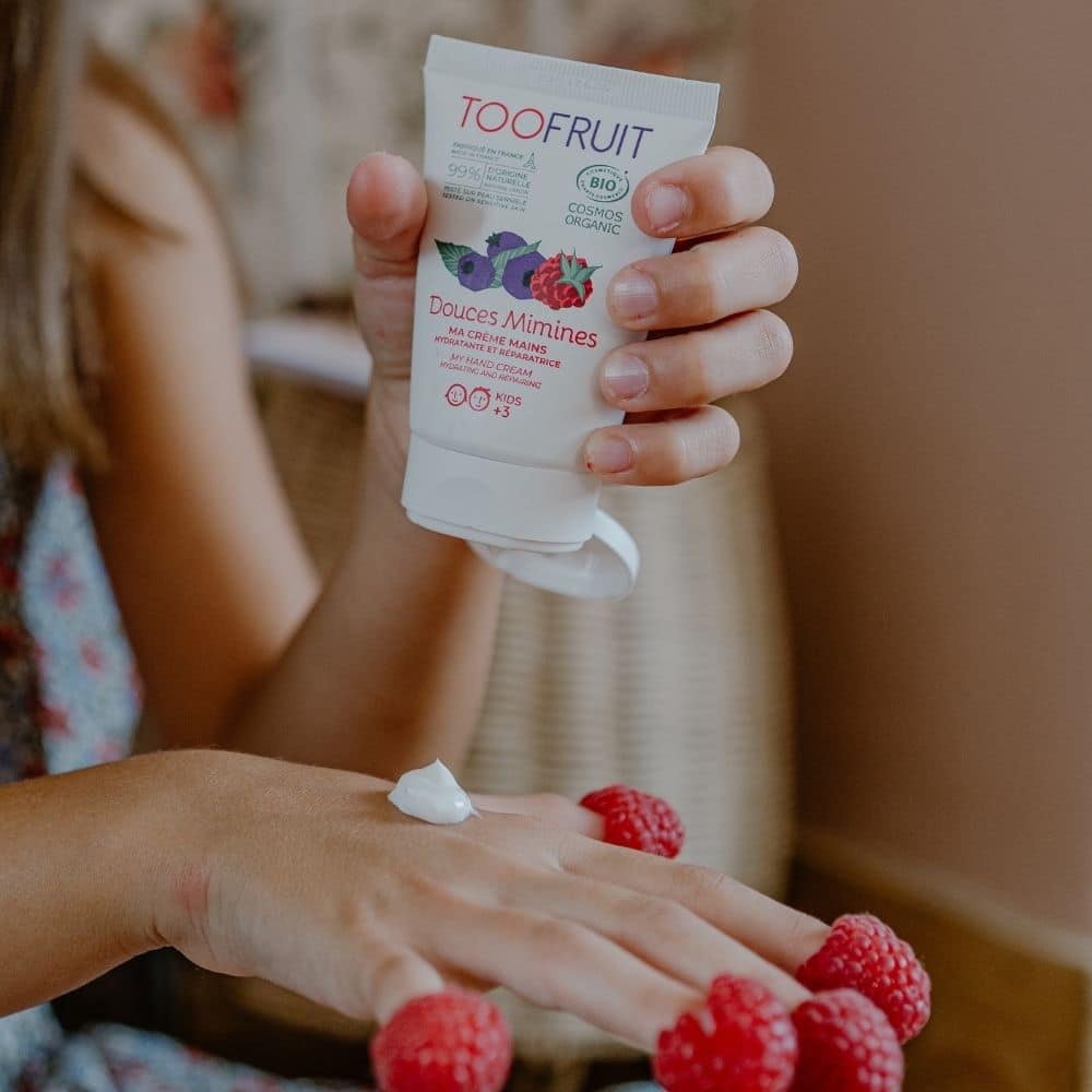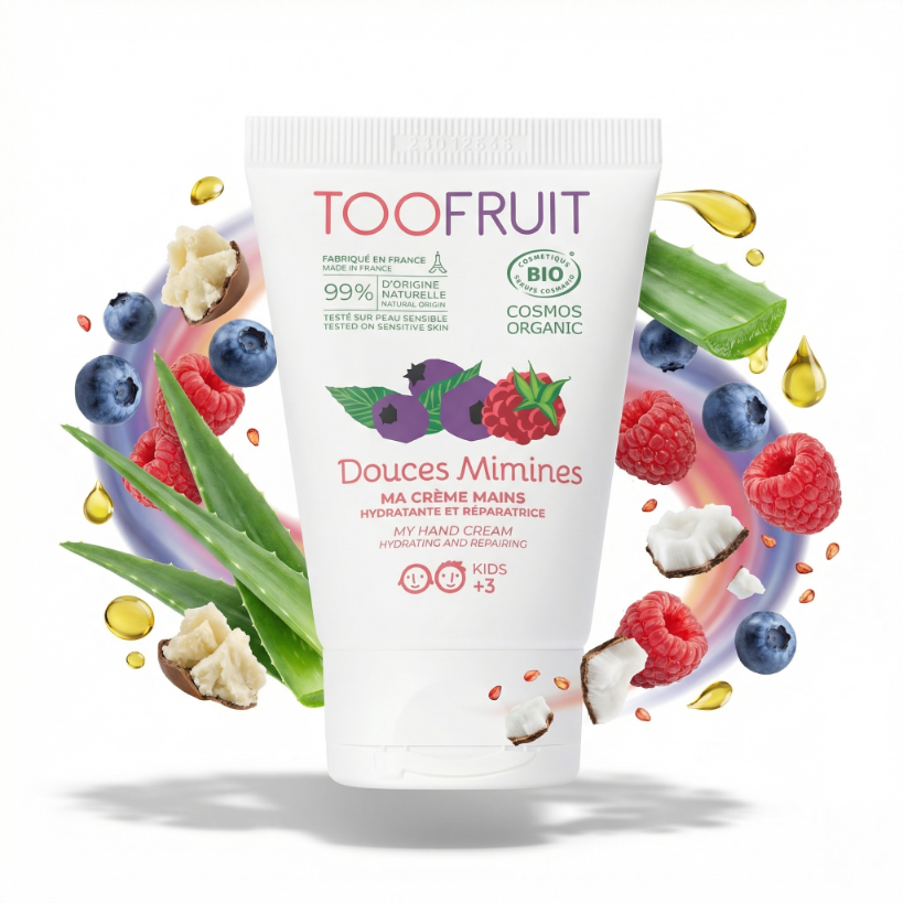 htmlTooFruit Odżywczy krem do rąk dla dzieci 50 ml – Borówka & MalinaWybierz TooFruit Odżywczy krem do rąk dla dzieci, aby zapewnić swoim pociechom skuteczną i delikatną pielęgnację. Ten organiczny krem w pojemności 50 ml to idealne rozwiązanie dla dzieci od 3. roku życia, oferujące intensywne nawilżenie oraz ochronę wrażliwej skóry dłoni przed szkodliwymi czynnikami zewnętrznymi. Dzięki fruitywemu zapachowi borówki i maliny, codzienna pielęgnacja staje się przyjemnością.Krem wyróżnia się lekką, nietłustą konsystencją, która szybko się wchłania, zapewniając miękkość i komfort przez cały dzień. Badania potwierdzają, że przy regularnym stosowaniu kremu dłonie stają się bardziej odporne na działanie niekorzystnych warunków atmosferycznych. Produkt został stworzony z naturalnych składników, które korzystnie wpływają na kondycję skóry.Główne składniki aktywne w kremie:- Organiczna woda borówkowa – bogata w polifenole, chroni przed wolnymi rodnikami- Hydrolat z arniki – koi i łagodzi podrażnienia- Masło shea – nawilża, odżywia i regeneruje- Organiczny aloes – wspiera naturalną kondycję skóry- Bisabolol z rumianku – łagodzi zaczerwienienia- Kompleks Filmo-Protect – tworzy ochronną barieręPrzy pomocy TooFruit Odżywczego kremu do rąk dla dzieci, rodzice mogą mieć pewność, że wybierają produkt certyfikowany, organiczny i bezpieczny dla dzieci. Regularne stosowanie sprawia, że pielęgnacja dłoni staje się prosta i szybka, a dzieci uczą się dbać o siebie w sposób odpowiedzialny i przyjazny naturze.Aby skorzystać z dobrodziejstw tego produktu, wystarczy nałożyć krem na czystą, suchą skórę dłoni, rozprowadzając go równomiernie od nadgarstków po czubki palców. Rekomendujemy stosowanie 2–3 razy dziennie, szczególnie w momentach, gdy dłonie są zniszczone lub wymagają intensywnego nawilżenia. Spraw, aby pielęgnacja skóry stała się radosnym elementem codziennej rutyny.