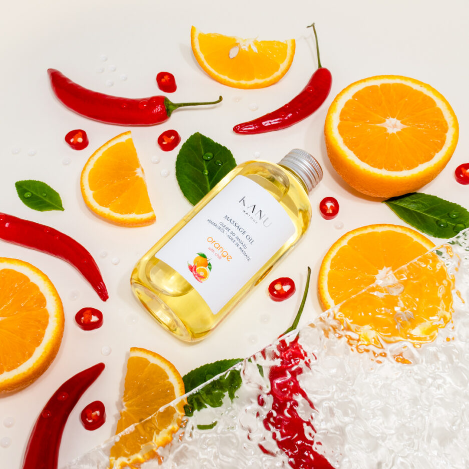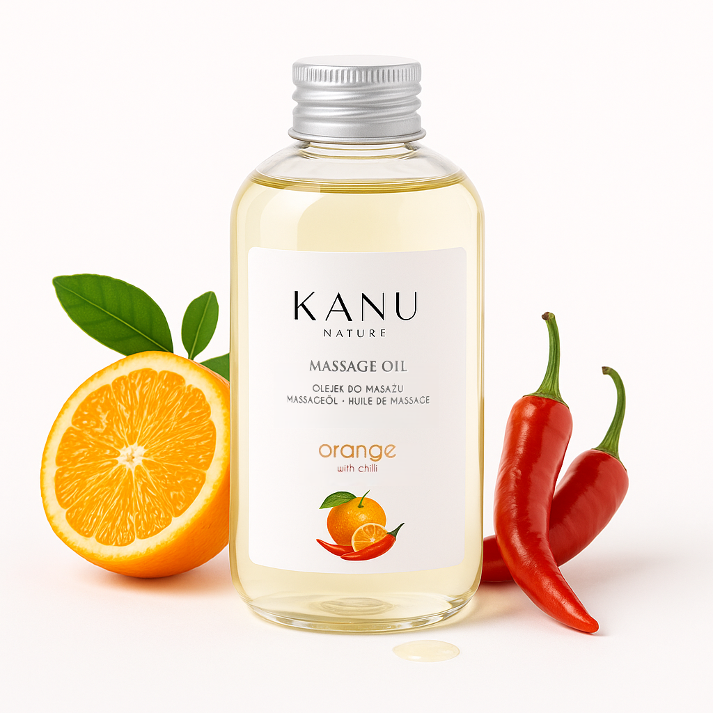 Przenieś swoje doświadczenie z gabinetu SPA do własnego domu z olejkiem do masażu od Kanu – Pomarańcza z chili.