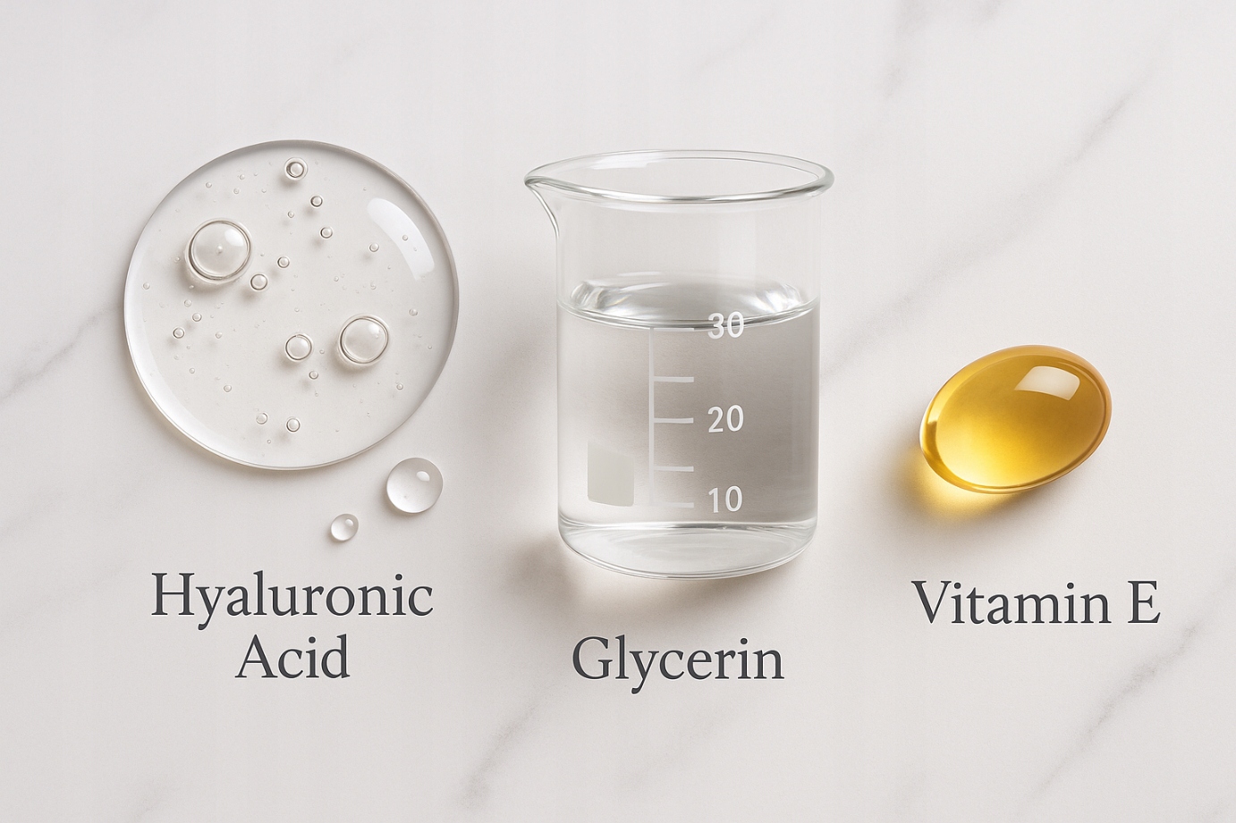 Gliceryna – silnie nawilża, zwiększa elastyczność, nadaje skórze jedwabistą miękkość.
