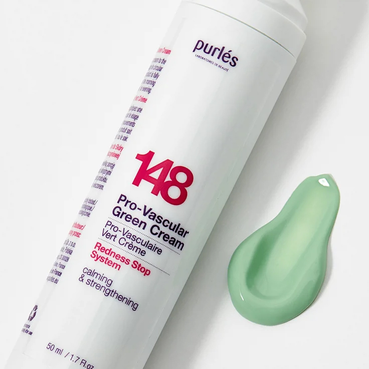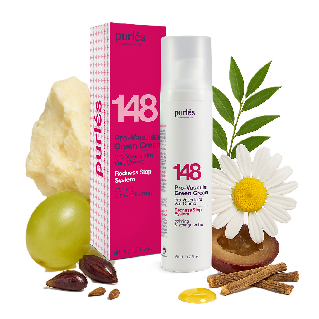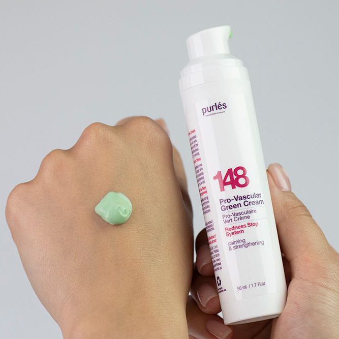 Purles 148 Zielony Krem Pro-Vascular do Skóry Naczyniowej i z Rumieniem 50 ml to innowacyjny preparat dedykowany cerze naczyniowej, który oferuje natychmiastową ulgę oraz redukcję zaczerwienień. Dzięki swojej zaawansowanej formule, pełnej naturalnych składników, krem ten nie tylko maskuje niedoskonałości, ale również wzmacnia naczynia krwionośne i koi podrażnienia, czyniąc go idealnym wyborem na co dzień oraz jako baza pod makijaż.