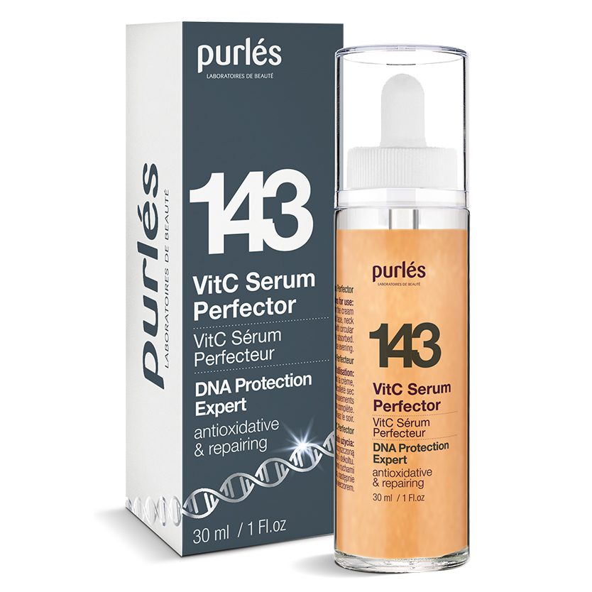 Purles 143 Serum VitC Perfector (30 ml) – to intensywnie skoncentrowane serum, wzbogacone o 10% innowacyjny Triple VitC Complex, które skutecznie rozjaśnia przebarwienia oraz redukuje oznaki starzenia. Dzięki liposomowej formule, witamina C głęboko penetruje skórę, zapewniając długotrwałe efekty oraz ochronę przed wolnymi rodnikami. Serum dostarcza intensywnego nawilżenia i poprawia kondycję skóry, sprawiając, że staje się ona jędrna i promienna.