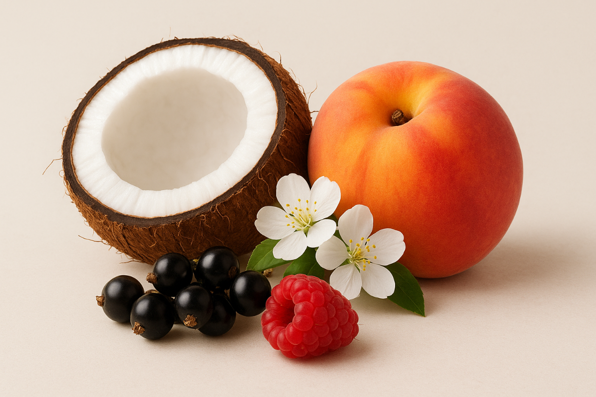 Exotic Kiss wyróżnia się intensywnym i zmysłowym zapachem, który powstał z połączenia soczystej czarnej porzeczki, gruszki oraz brzoskwini. W nutach serca znajdziesz egzotyczne akordy kokosu i mlecznych nut, które otulają ciało, a na zakończenie zmysłową bazę stanowią gourmand, malina i piżmo. Teka olfaktoryczna tego żelu sprawi, że każda kąpiel stanie się niezapomnianym przeżyciem.