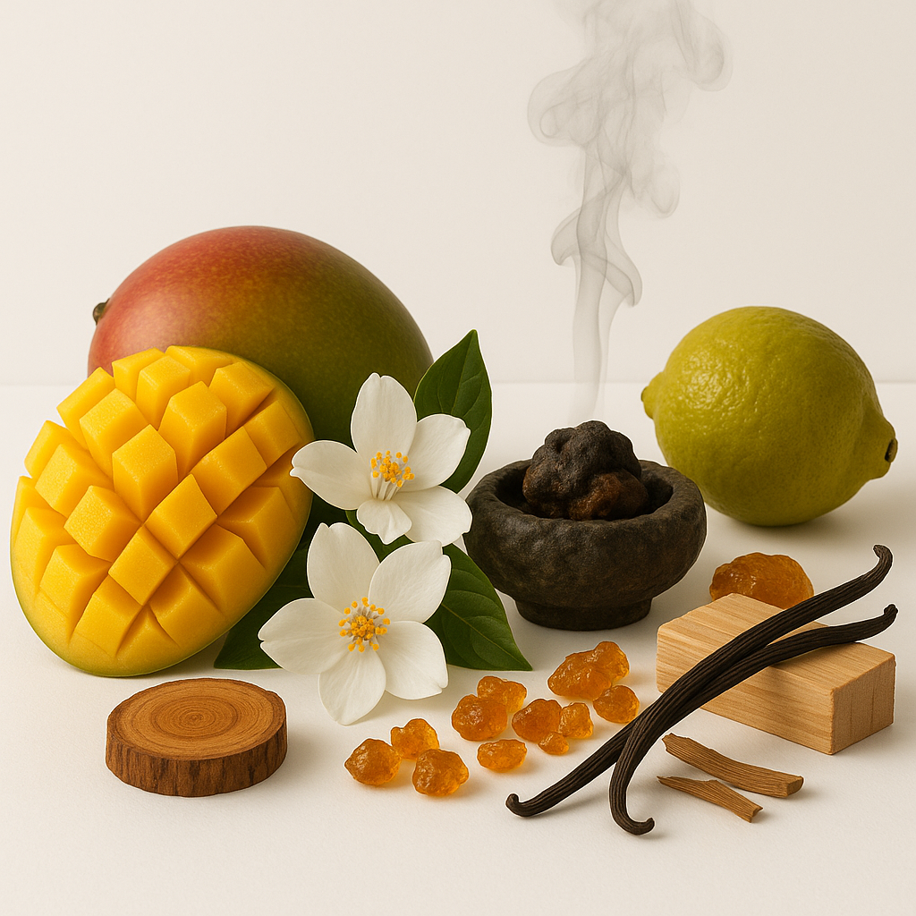 W perfumetce o pojemności 33 ml czeka na Ciebie wyjątkowa orintalno-kwiatowa kompozycja. Jej topowe nuty to soczyste mango, które dodaje energii i egzotyki, a serce zapachu kompozycji tworzy połączenie jaśminu oraz kadzidła, oferujące głębię i zmysłowość. To niepowtarzalne połączenie wzbogacone jest bergamotką i wanilią, które dostarczają świeżości i słodyczy, a całość przypieczętowują nuty drzewa sandałowego oraz olibanum, nadając całości nowoczesny charakter.