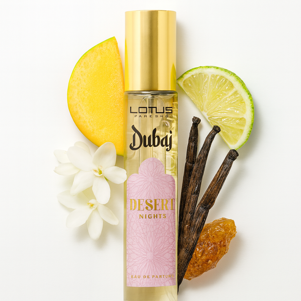 Odkryj magiczne aromaty Orientu z perfumetką Lotus Dubaj Desert Nights. Stworzona z myślą o kobietach, które pragną manifestować swoją indywidualność, ta unikalna kompozycja zapachowa łączy w sobie elegancję, odwagę i zmysłowość. Poczuj, jak hipnotyzujący zapach otula Twoją skórę, transportując Cię w głąb nocnego Dubaju, gdzie niezwykłe aromaty owoców i egzotycznych przypraw rozbudzają zmysły.