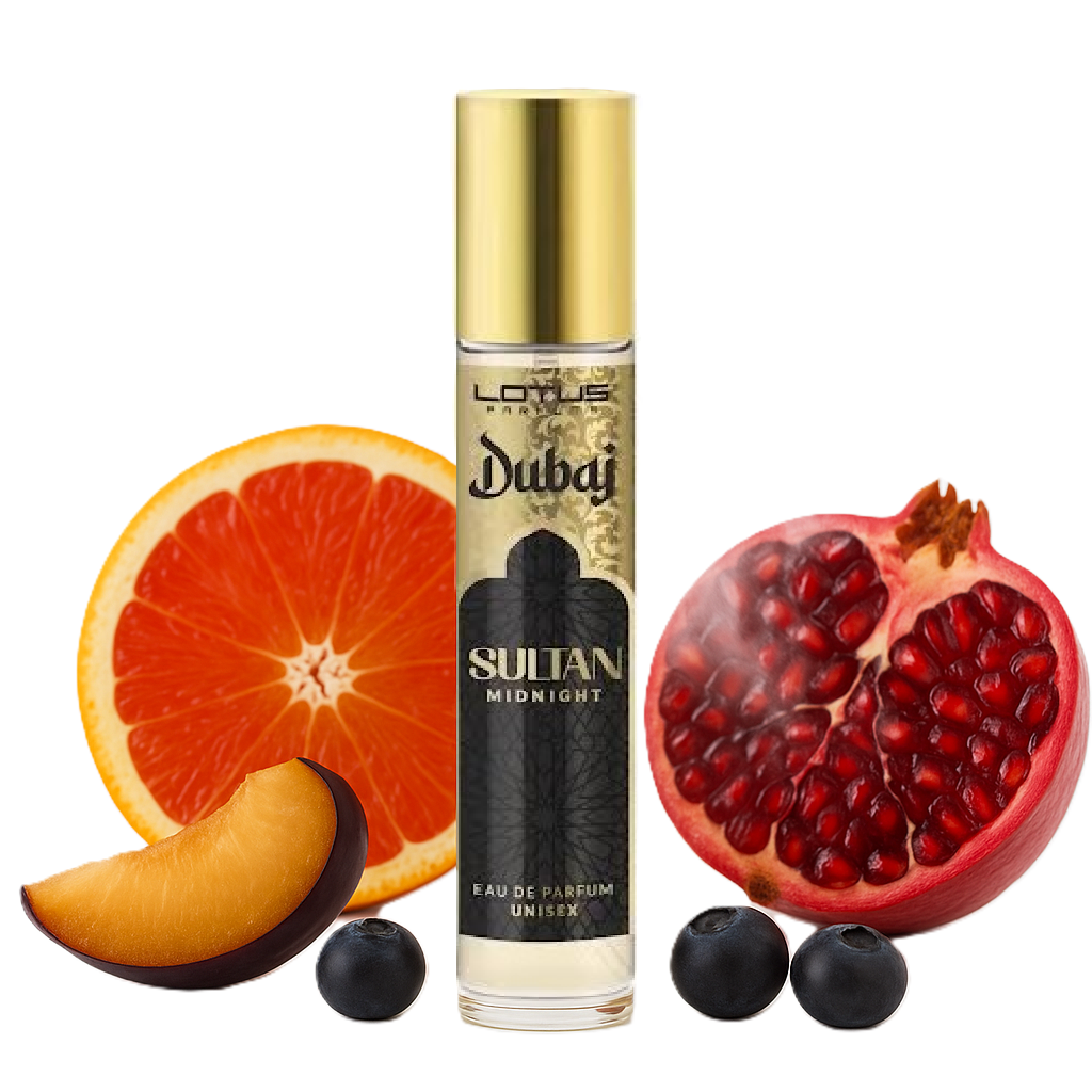 Sultan Midnight to niezwykły zapach uniseks, który łączy w sobie nuty owocowe z zmysłowymi akcentami piżma, tworząc kompozycję doskonałą na romantyczne wieczory. To perfumy stworzone dla osób, które pragną emanować pewnością siebie i elegancją, jednocześnie otulając się tajemniczością nocy. Z każdym atomem tej unikalnej kompozycji, doświadczysz magii wieczoru, co uczyni każdą chwilę niezapomnianą.