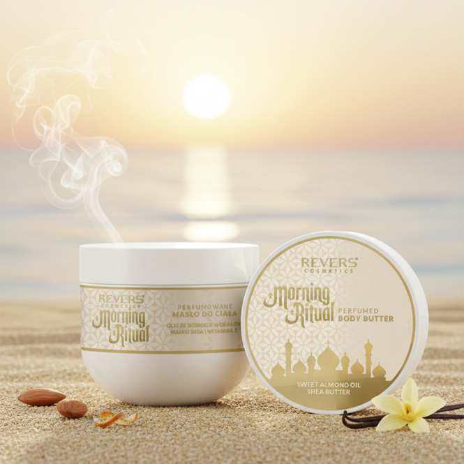 Revers MORNING RITUAL perfumowane masło do ciała 250 ml to idealne połączenie intensywnej pielęgnacji z eleganckim zapachem, które uczyni Twoją codzienną rutynę bardziej luksusową. Dzięki wyjątkowym składnikom, taki jak masło shea i olej ze słodkich migdałów, Twoja skóra zyska nie tylko odpowiednie nawilżenie, ale również gładkość i miękkość, które utrzymają się na długie godziny.