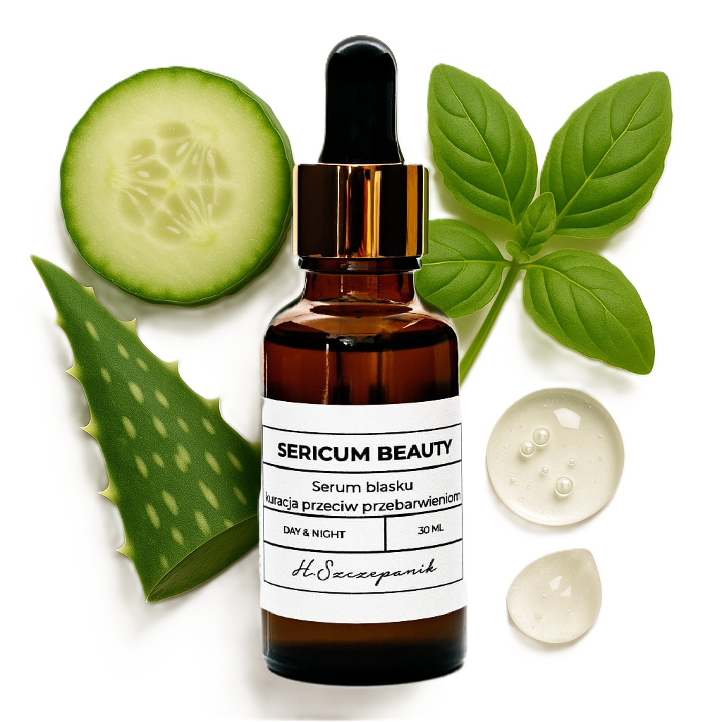 Serum Blasku – Kuracja Przeciw Przebarwieniom 30 ml to innowacyjny produkt od Sericum Beauty, zap designed by a biotech expert to restore your skin’s natural glow. This unique serum not only deeply moisturizes, but also evens out skin tone and enhances luminosity, making it an essential part of your daily skincare routine.