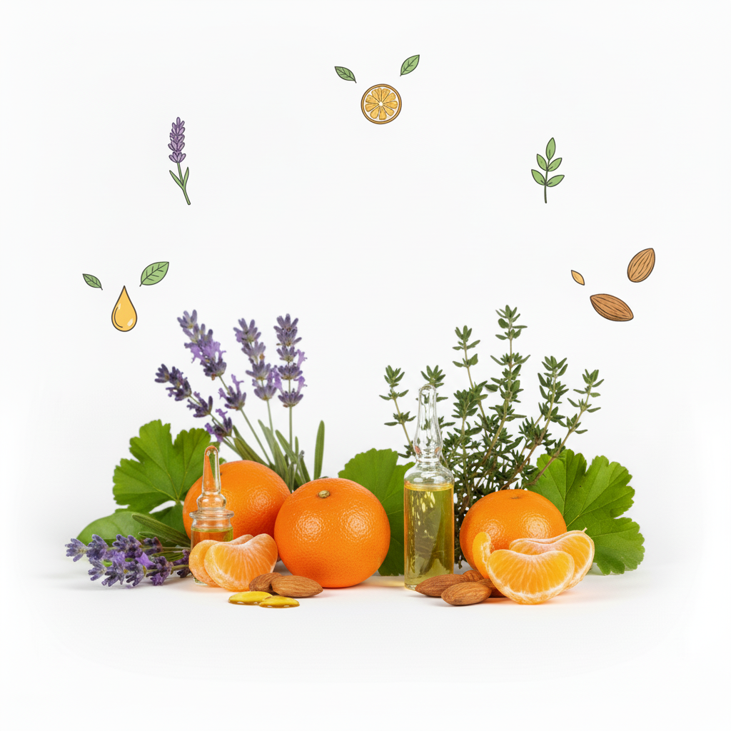 | Składniki aktywne | Olej migdałowy, Sól Epsom, Olej lawendowy, Olejek tymiankowy, Olejek mandarynkowy, Olejek z drzewa różanego, Olejek ravensara, Balsam copaiba |