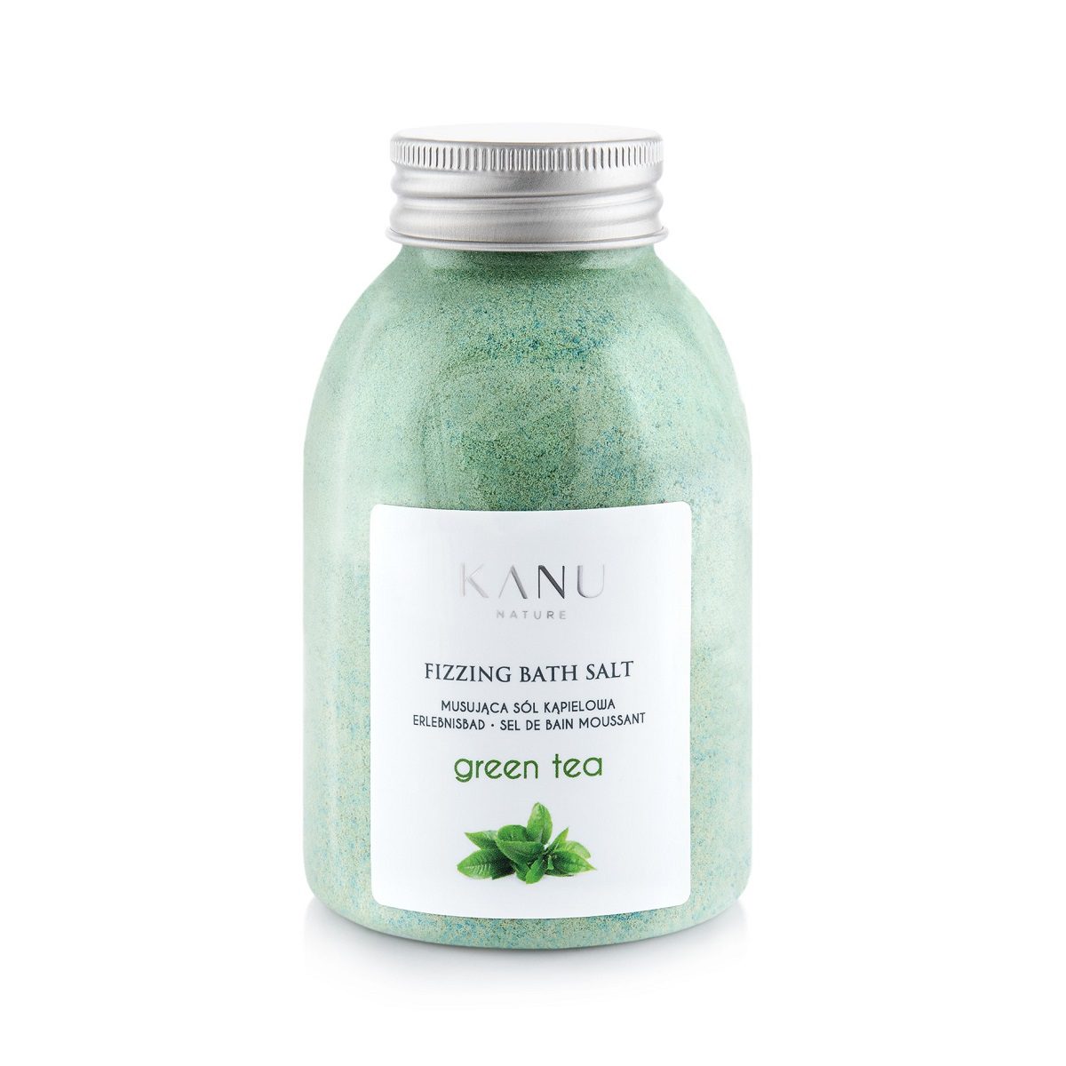 Musująca sól do kąpieli Kanu o zapachu zielonej herbaty wygładza skórę, pobudza krążenie i relaksuje zmysły podczas domowego SPA.