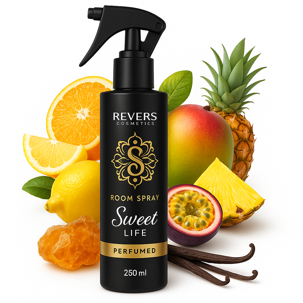 Spray Zapachowy Do Pomieszczeń SWEET LIFE od Revers Cosmetics to doskonały wybór dla każdego, kto pragnie wprowadzić do swojego wnętrza odrobinę świeżości i luksusu. Ten perfumowany spray 250 ml łączy w sobie radość zmysłów i elegancję, tworząc niepowtarzalną atmosferę, która z pewnością zachwyci każdego domownika.