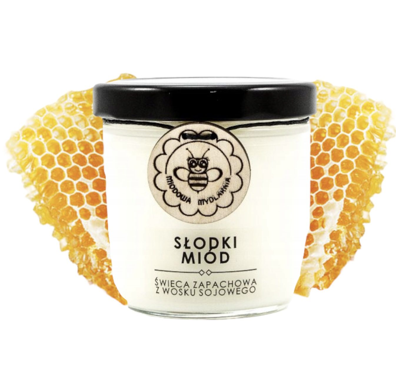 Atutem każdej świecy z Miodowej Mydlarni jest fakt, że nie zawierają one sztucznych barwników, substancji modyfikowanych genetycznie, parafiny czy ołowiu w knocie.
