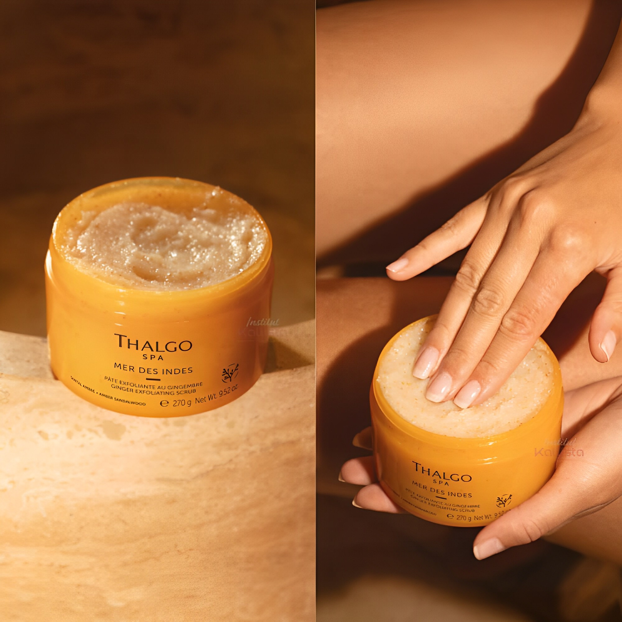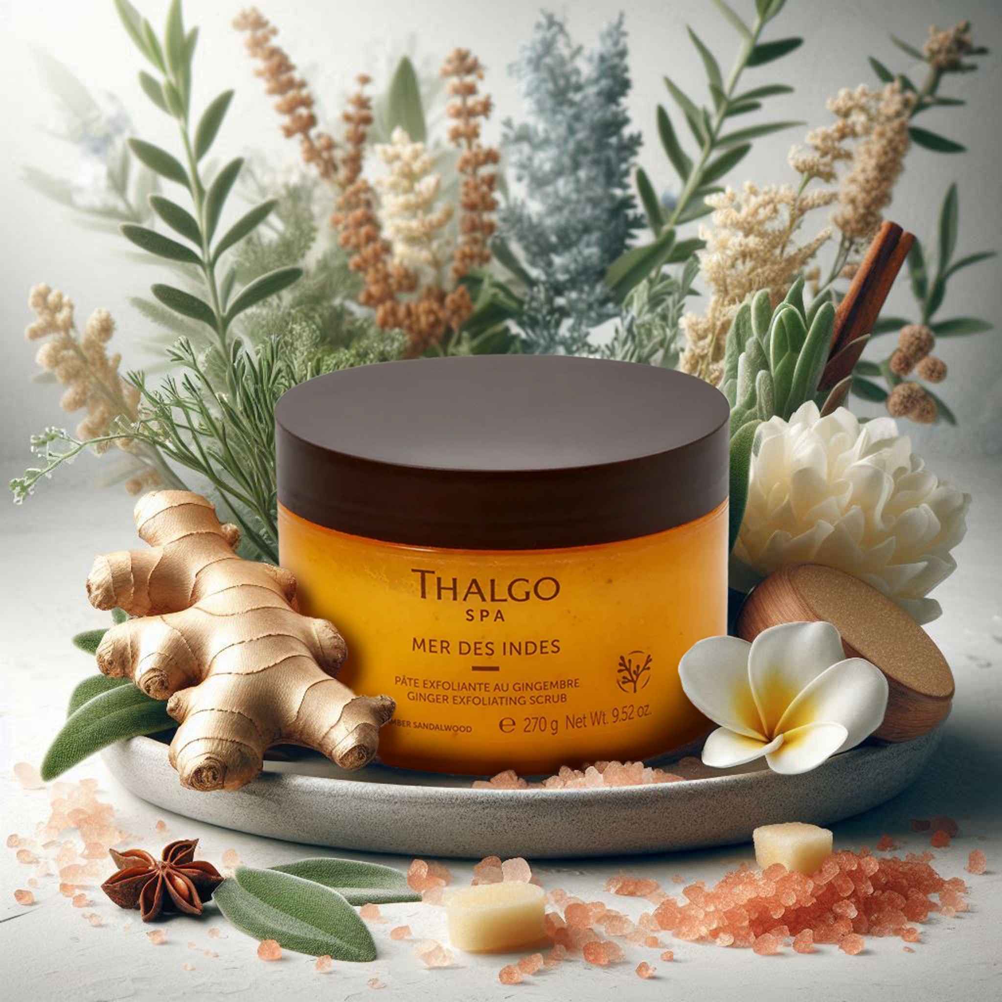 Thalgo Imbirowy peeling do ciała to wyjątkowy kosmetyk o pojemności 270 g, który łączy w sobie tradycje ajurwedyjskie z nowoczesnymi technologiami pielęgnacyjnymi. Stworzony z myślą o każdym typie skóry, ten luksusowy peeling głęboko oczyszcza, skutecznie usuwa martwe komórki naskórka oraz nawilża i odżywia skórę, pozostawiając ją miękką i gładką.