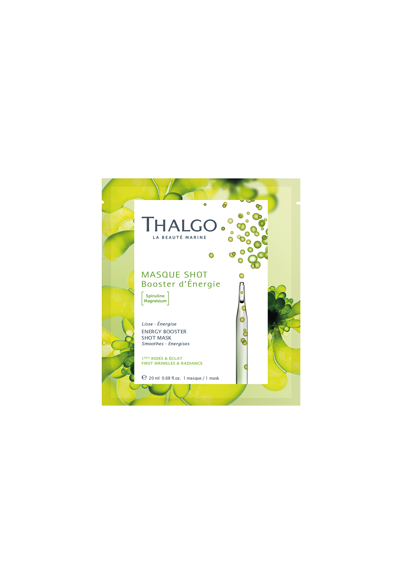 Maska Energy Booster Shot Mask 20 ml natychmiastowo odmładza i rewitalizuje zmęczoną skórę. Stworzona z elastycznych włókien roślinnej celulozy, wzbogacona ektraktem spiruliny, morskimi minerałami oraz kwasem hialuronowym, skutecznie wygładza mikrorzeźbę skóry. Do jej zalet należą:
