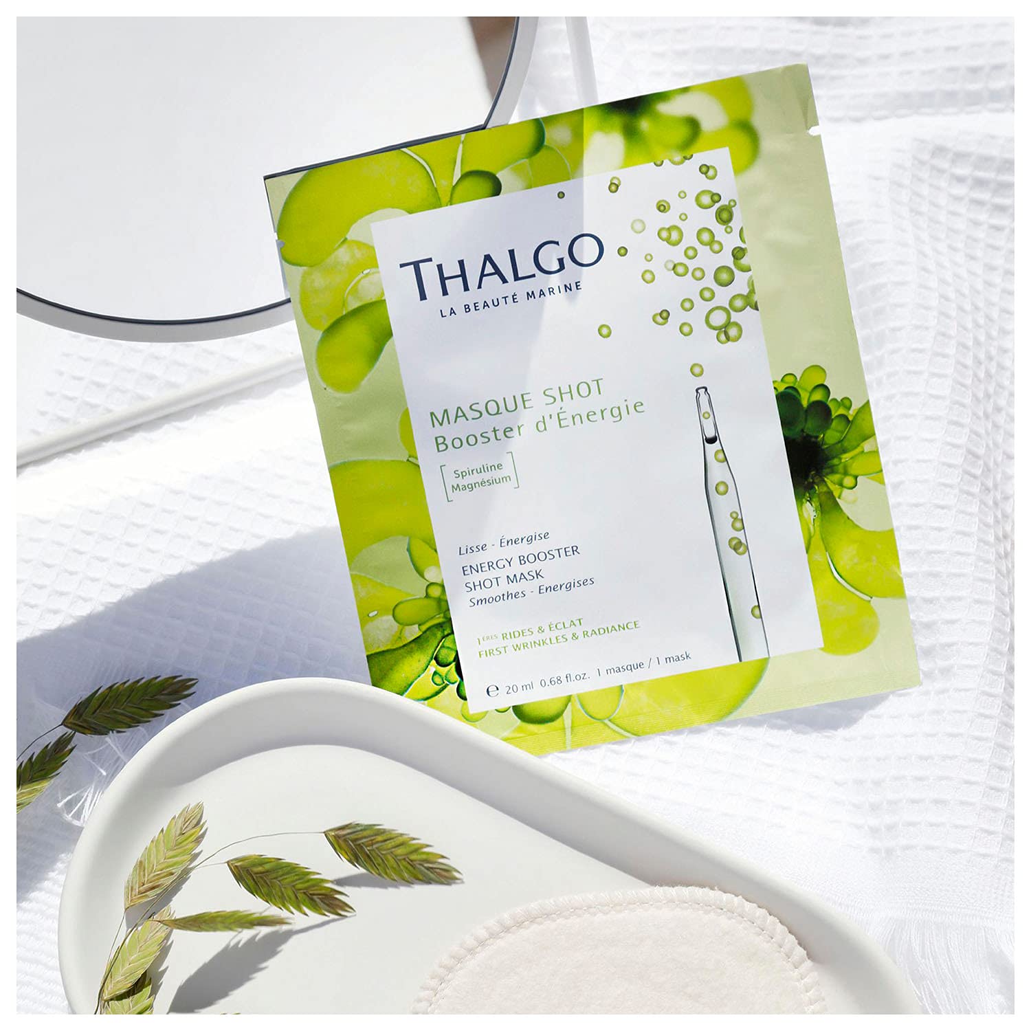 Thalgo Wygładzająco-energetyzująca maska to innowacyjny produkt w formie płatu, który natychmiastowo przywraca skórze witalność i blask. Stworzona z myślą o osobach borykających się z oznakami zmęczenia oraz szarością cery, maska korzysta z zaawansowanej formuły opartej na 97,4% składników pochodzenia naturalnego.