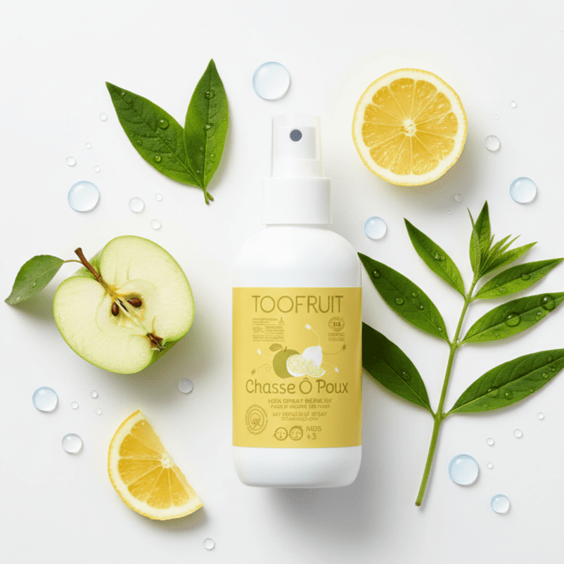 Organiczny spray TooFruit jabłko–cytryna – etap 4 to codzienna, naturalna ochrona przed wszami dla dzieci. Końcowy krok profilaktyki po etapie leczenia: pomaga zniechęcać wszy do osiedlania się na włosach i jednocześnie pielęgnuje oraz nawilża skórę głowy.
