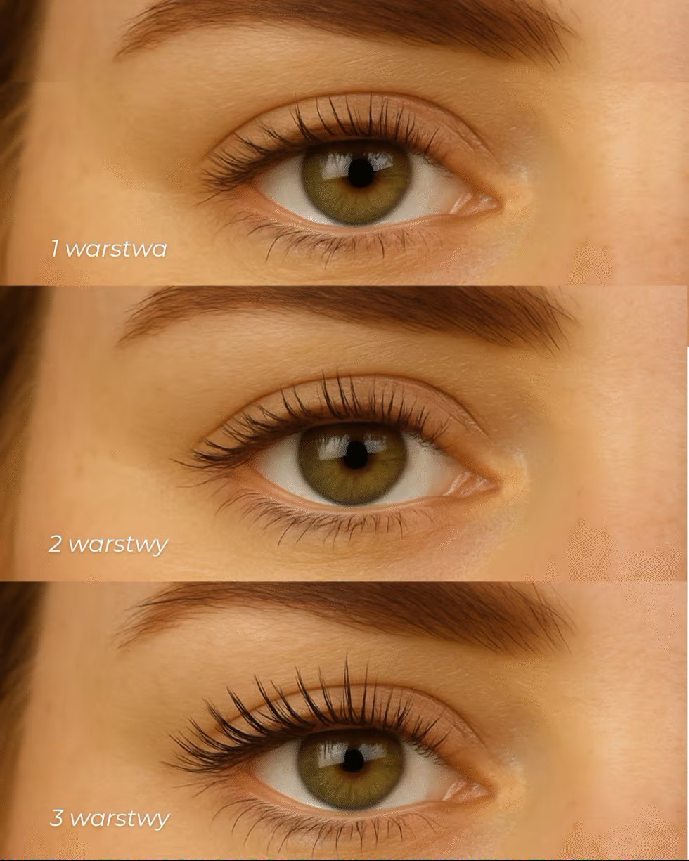 W składzie tuszu znajdują się naturalne składniki, które wspierają zdrowie rzęs. Olej konopny regeneruje i odżywia rzęsy od nasady po same końce, podczas gdy ekstrakt z aloesu intensywnie nawilża i koi delikatne włoski. Dodatkowo, witaminy E i C chronią rzęsy, wzmacniają je oraz poprawiają ich elastyczność. Dzięki temu tusz nie tylko wykonuje swoje podstawowe zadanie, ale także skutecznie dba o kondycję rzęs.