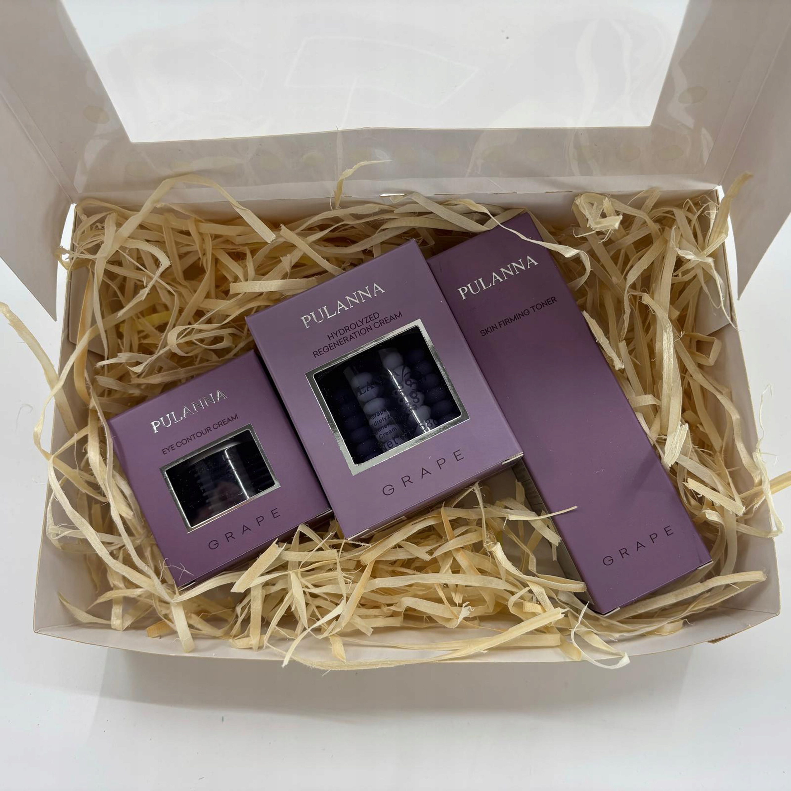 Podaruj swojej skórze to, co najlepsze, dzięki zestawowi Pulanna na bazie ekstraktów z winogron. Ten luksusowy zestaw, zapakowany w eleganckie pudełko z okienkiem, to doskonały pomysł na prezent – zarówno dla bliskiej osoby, jak i dla siebie!?