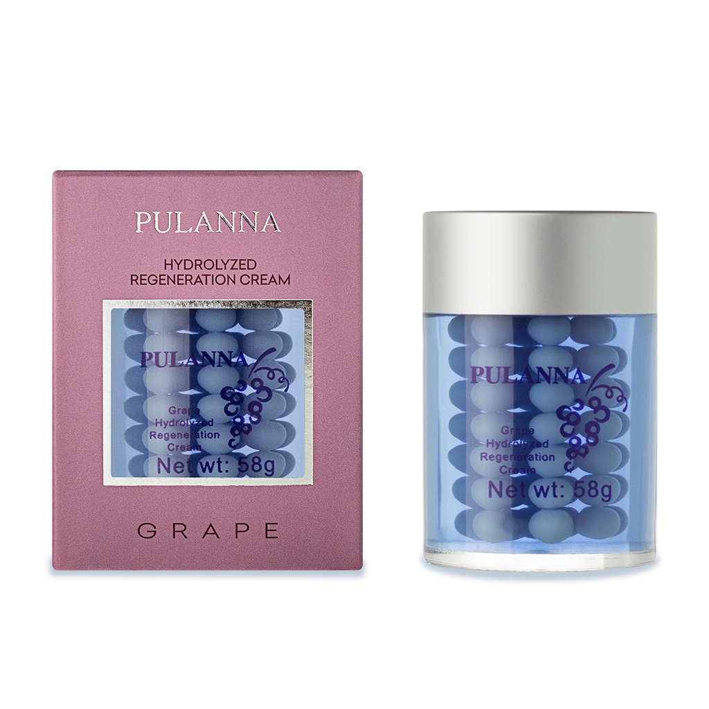 Ciesz się skórą pełną blasku i witalności z luksusowym kremem regenerującym Pulanna! Formuła na bazie naturalnych ekstraktów z winogron, żeń-szenia i kwasu hialuronowego zapewnia dogłębną regenerację, intensywne nawilżenie i widoczne wygładzenie skóry.