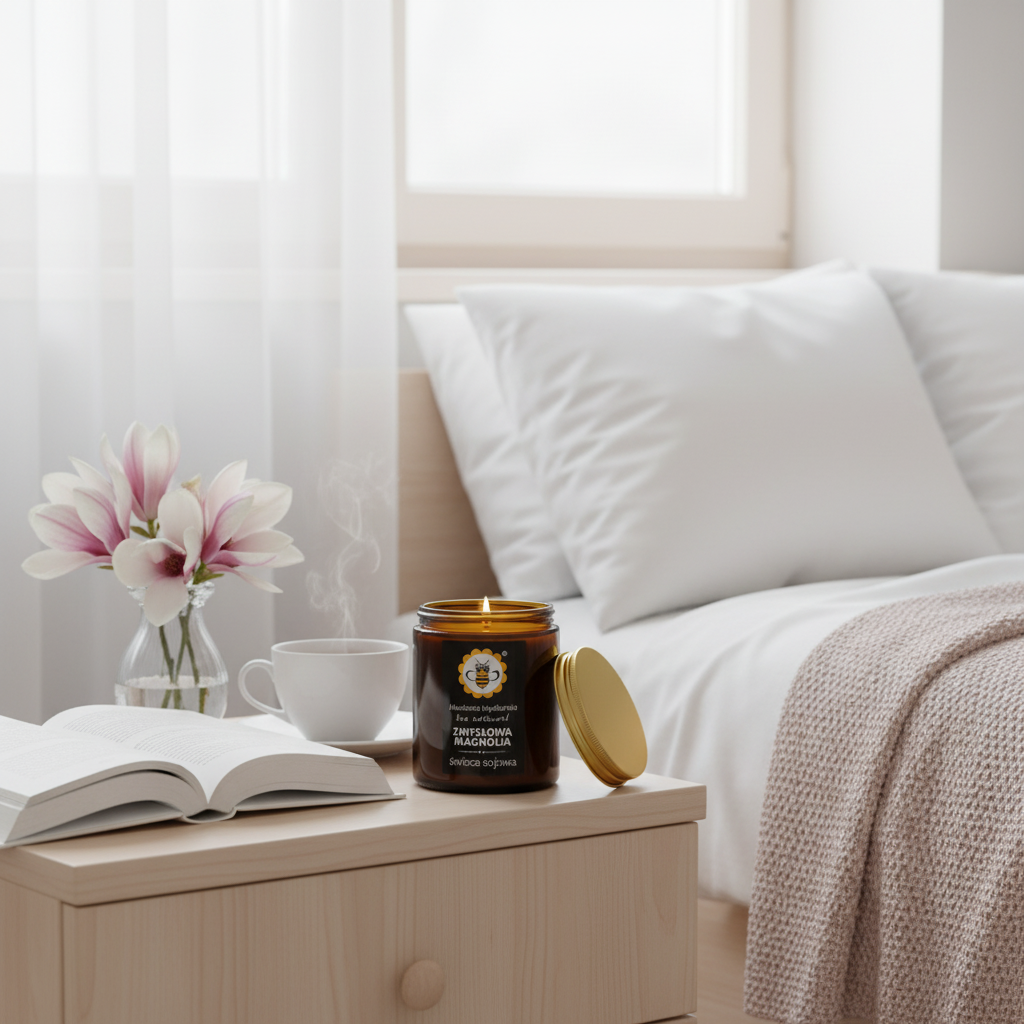 Zmysłowa Magnolia – naturalna świeca sojowa 180 ml o kwiatowo-korzennym aromacie, który otula i wprowadza relaksującą, elegancką atmosferę.